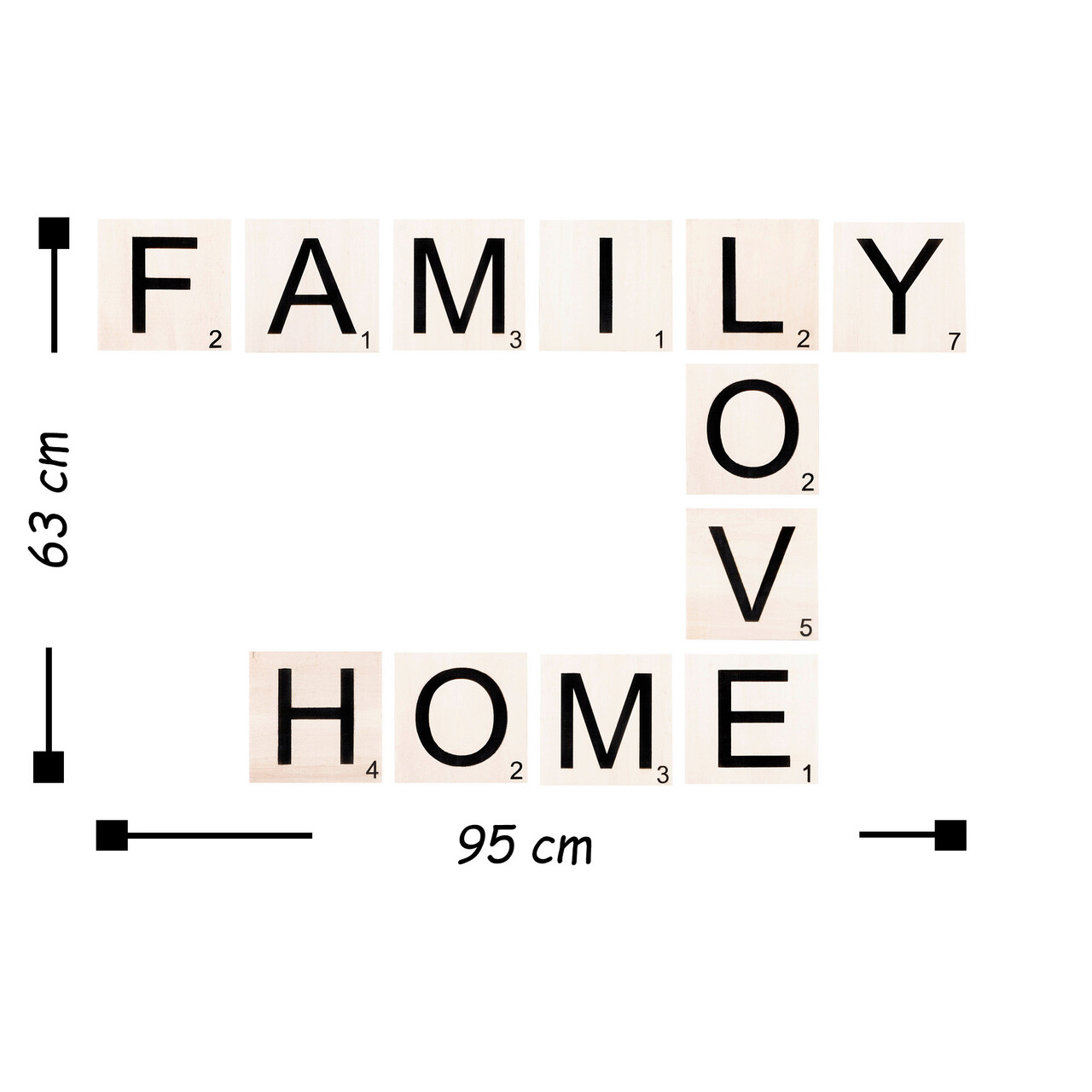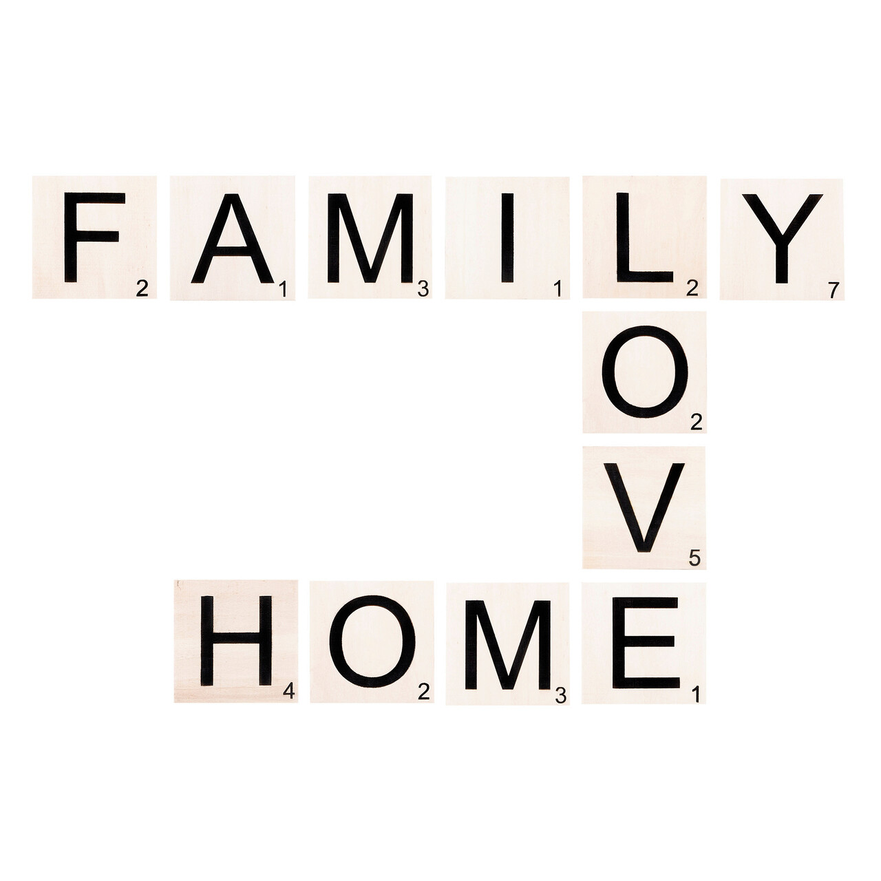 Decoratiune de perete, Scrabble Set, Lemn, 95 x 63 cm, Alb/Negru