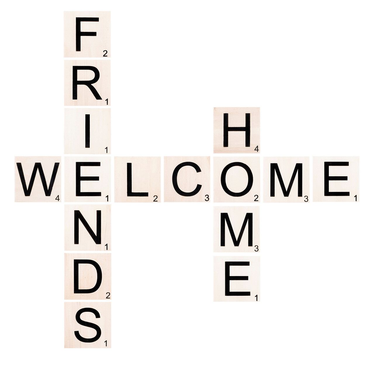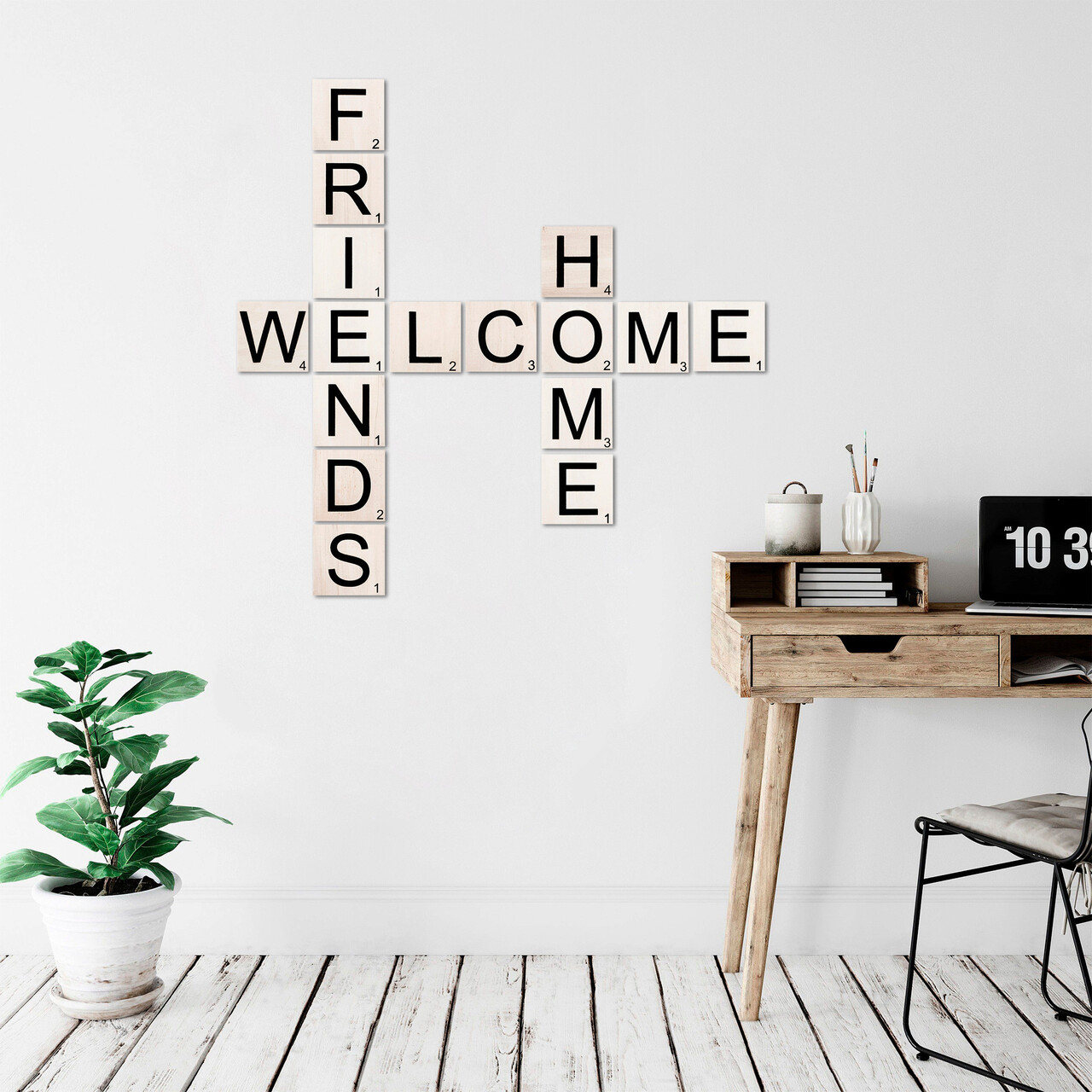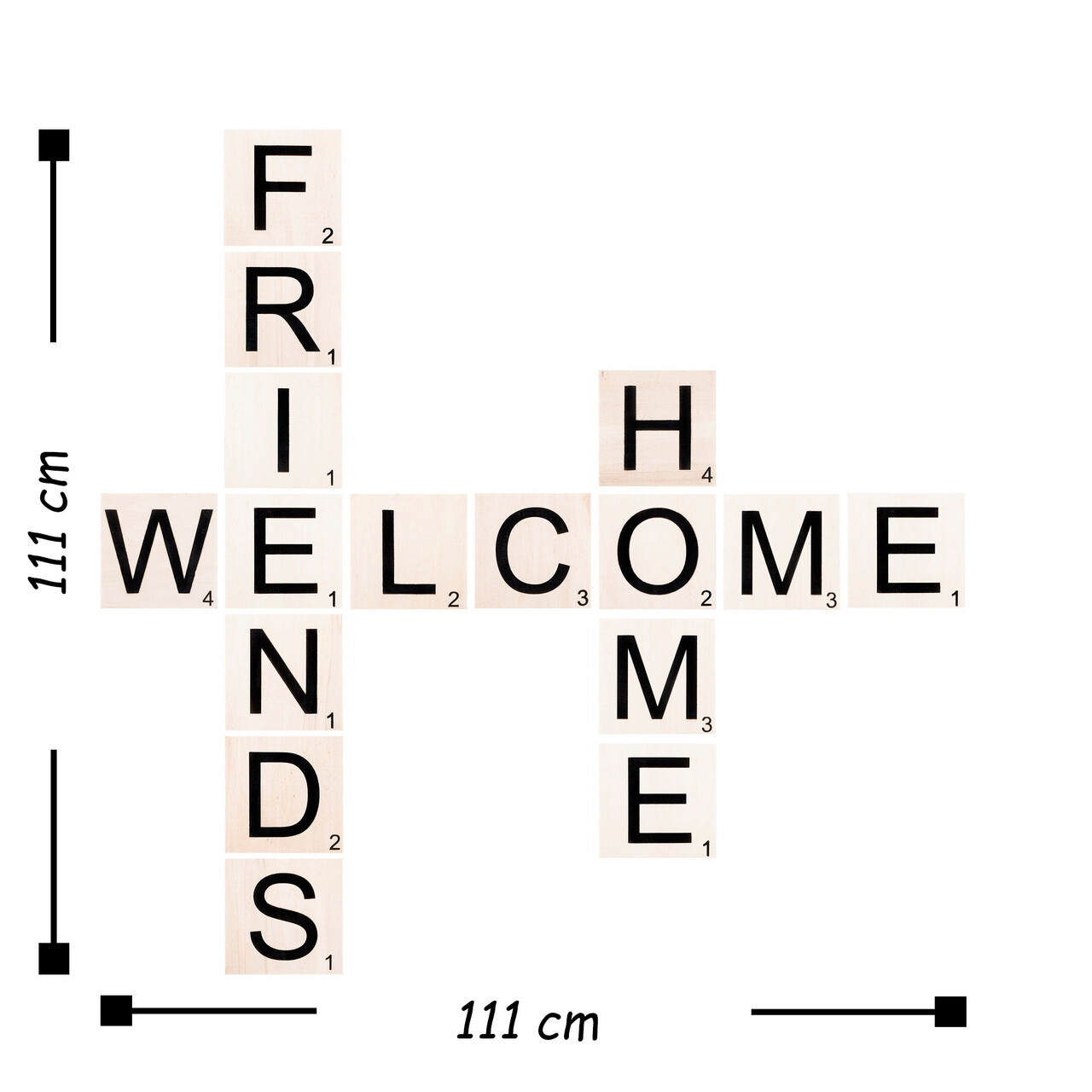 Decoratiune de perete, Scrabble Set, Lemn, Dimensiune: 111 x 111 cm, Alb/Negru