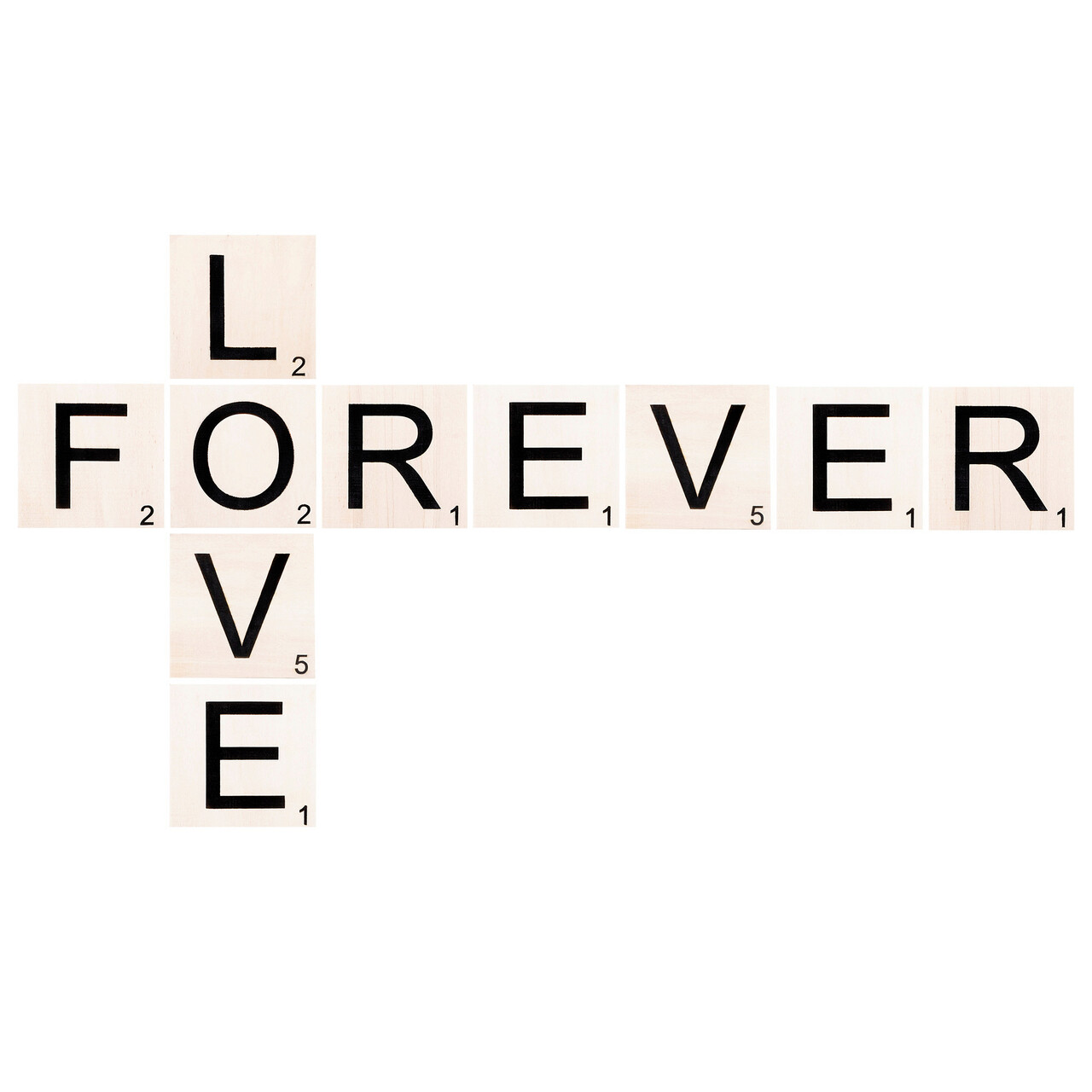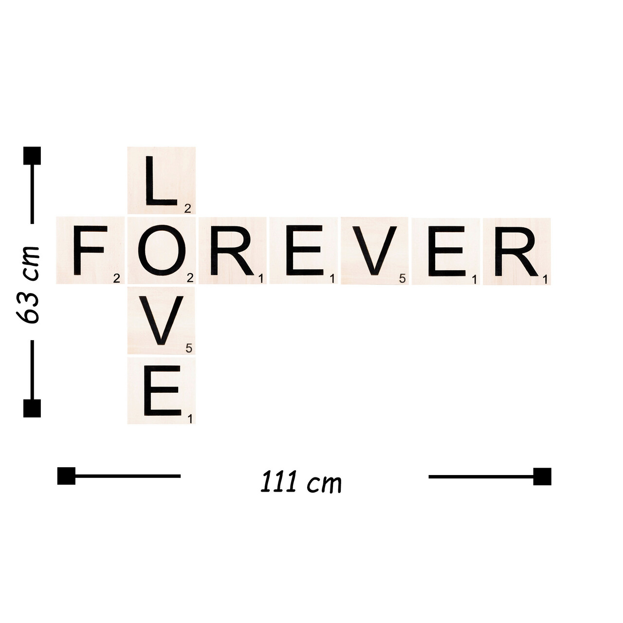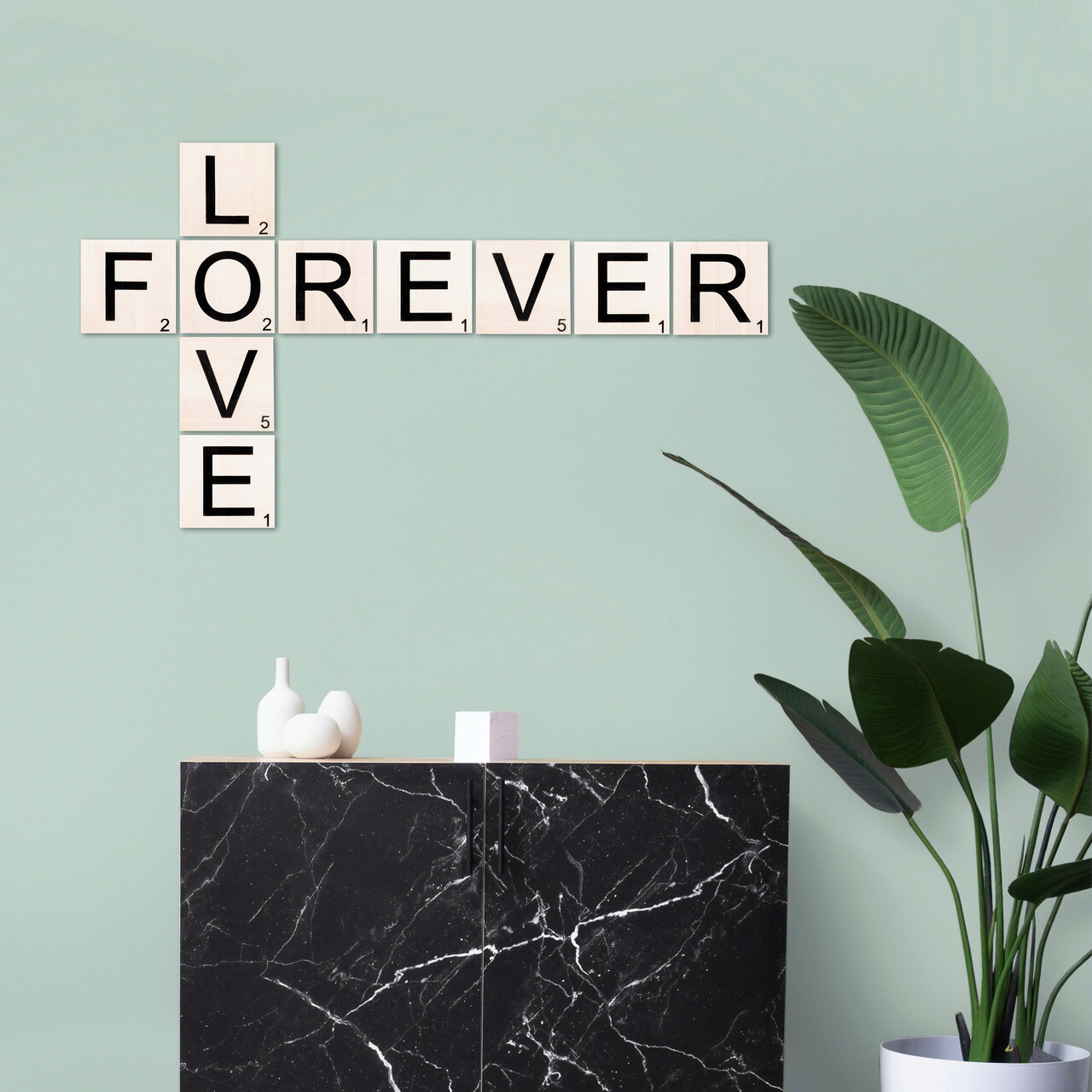 Decoratiune de perete, Scrabble Set, Lemn, Dimensiune: 111 x 63 cm, Alb/Negru