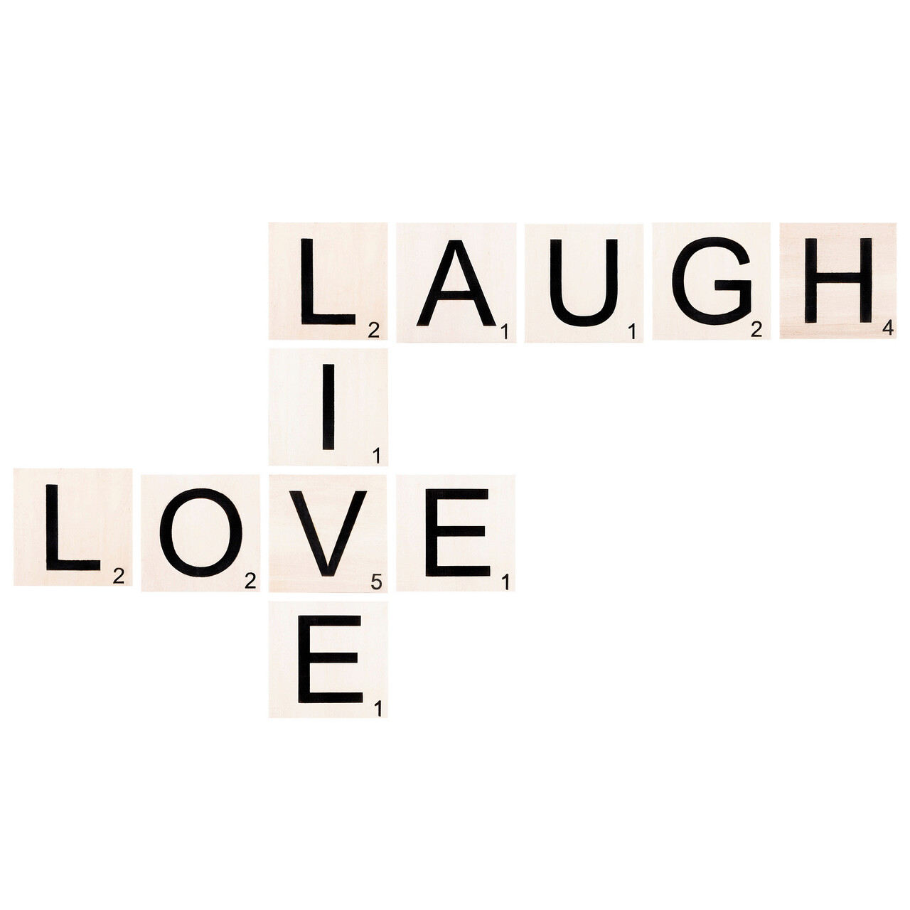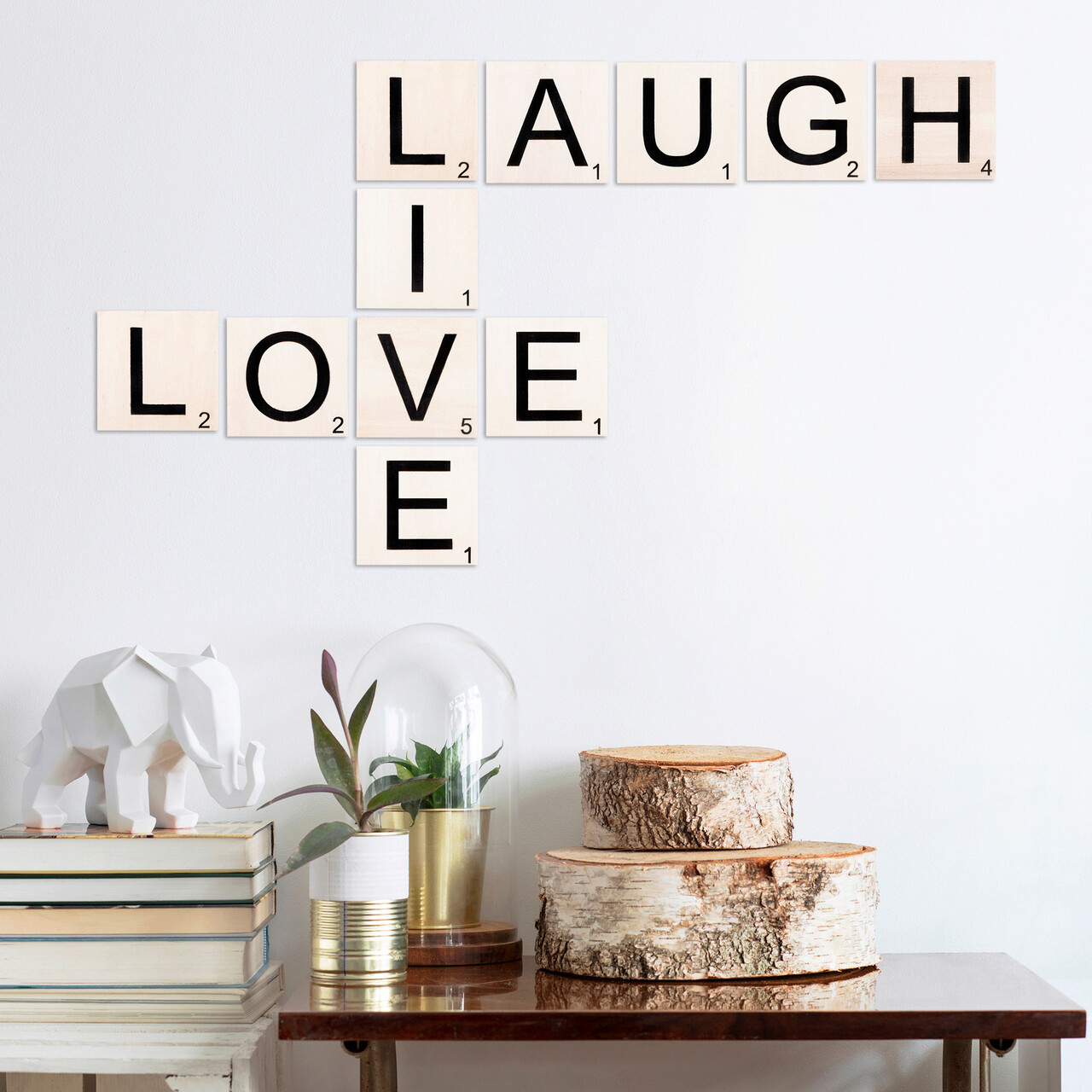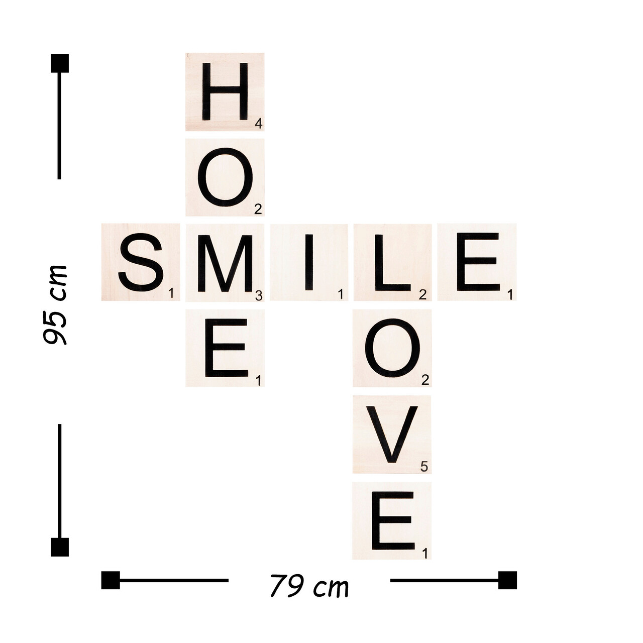 Decoratiune de perete, Scrabble Set, Lemn, Dimensiune: 111 x 63 cm, Alb/Negru
