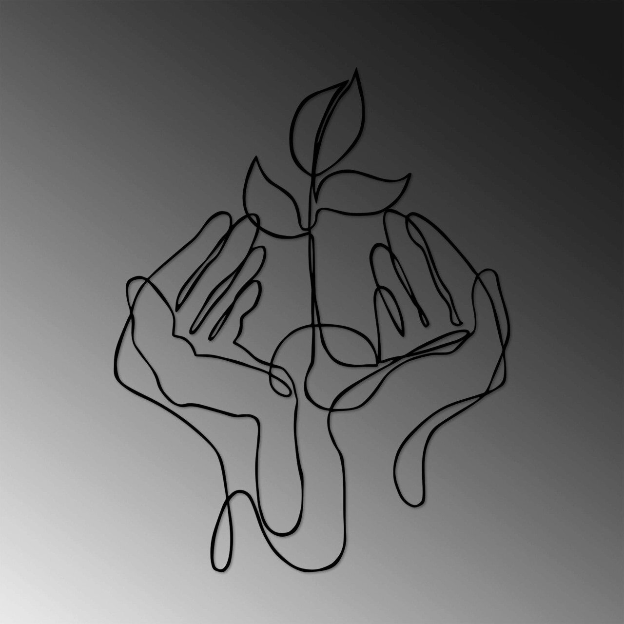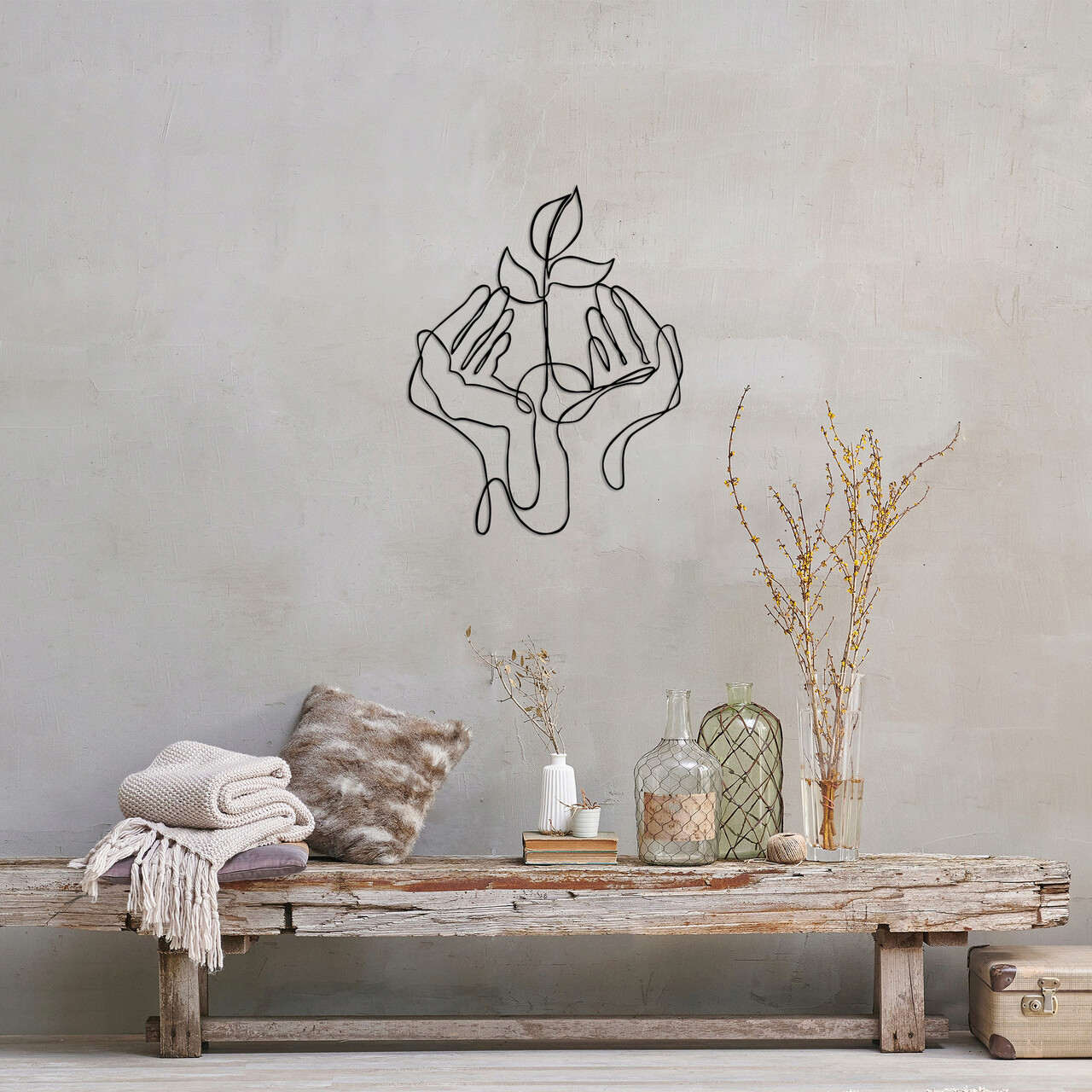 Decoratiune de perete, Sprout Greening in My Palm, Metal, Dimensiune: 53 x 68 cm, Negru