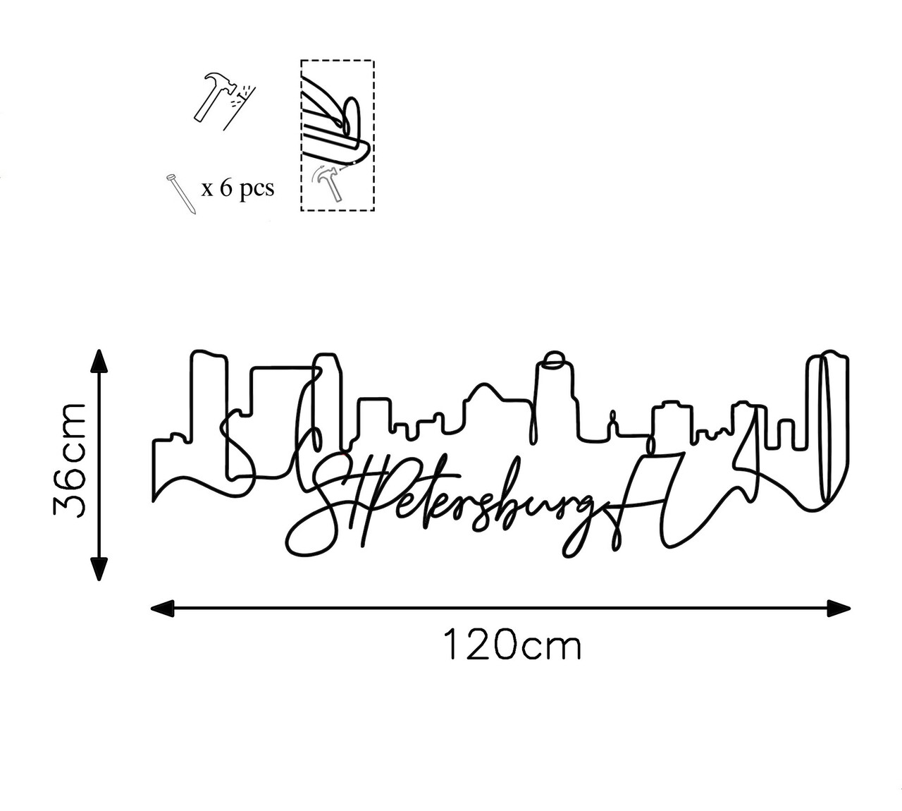 Decoratiune de perete, St.Petersburg, Metal, Grosime: 2 mm, Negru