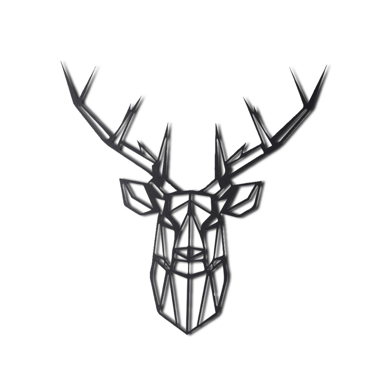 Decoratiune de perete, Stag 2, Metal, Dimensiune: 49 x 49 cm, Negru