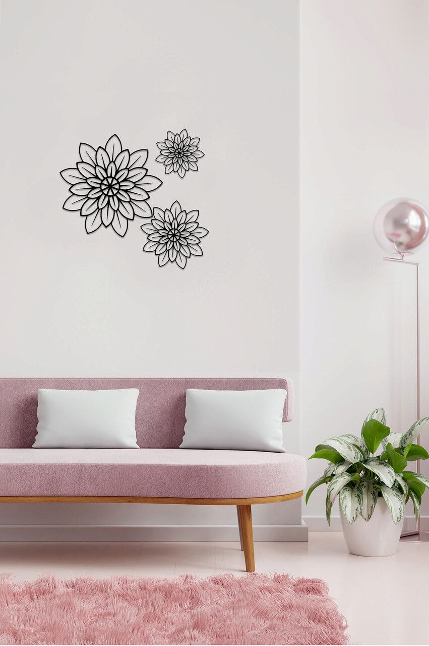 Decoratiune de perete, Succulent v2 3, Metal, 50 x 50 cm, Negru