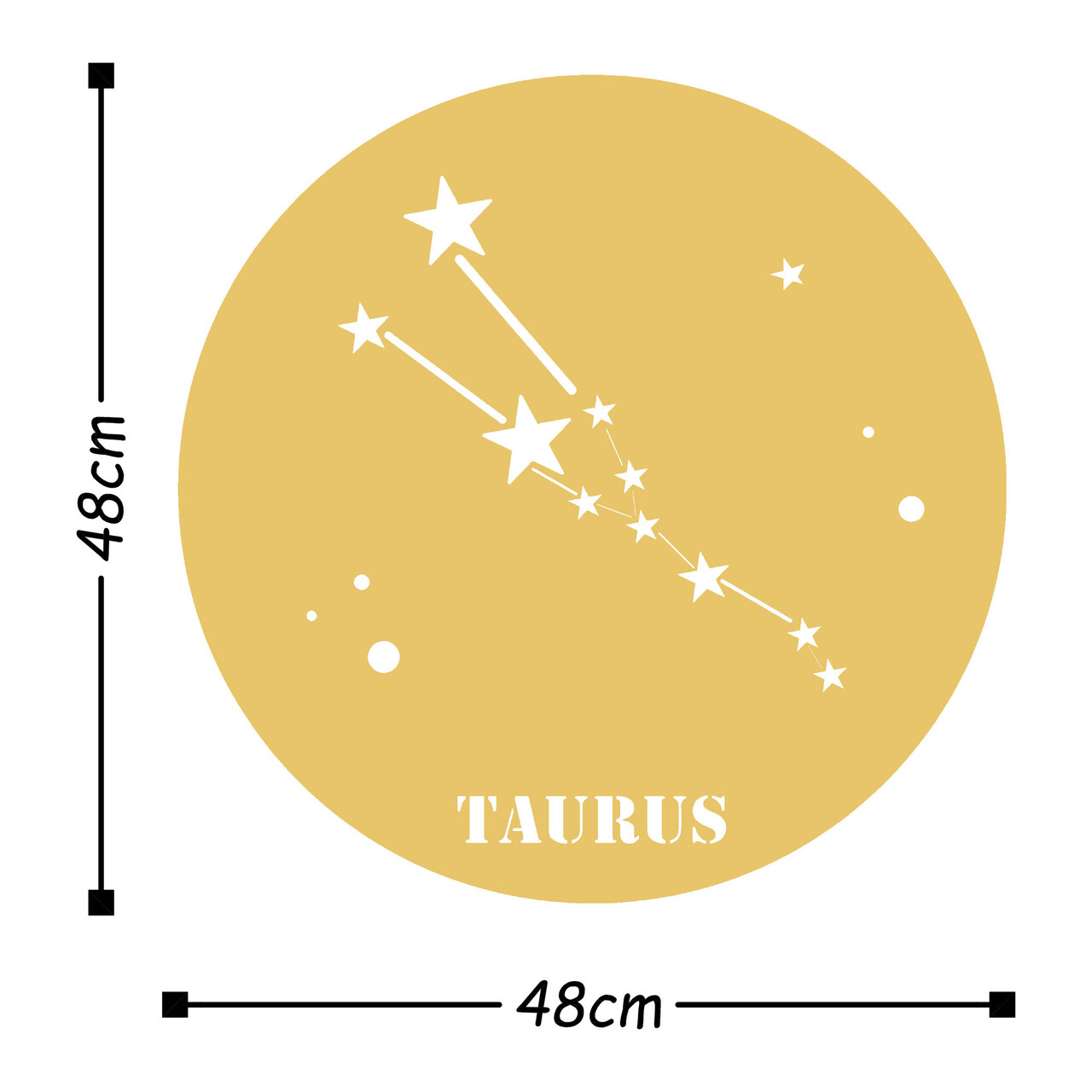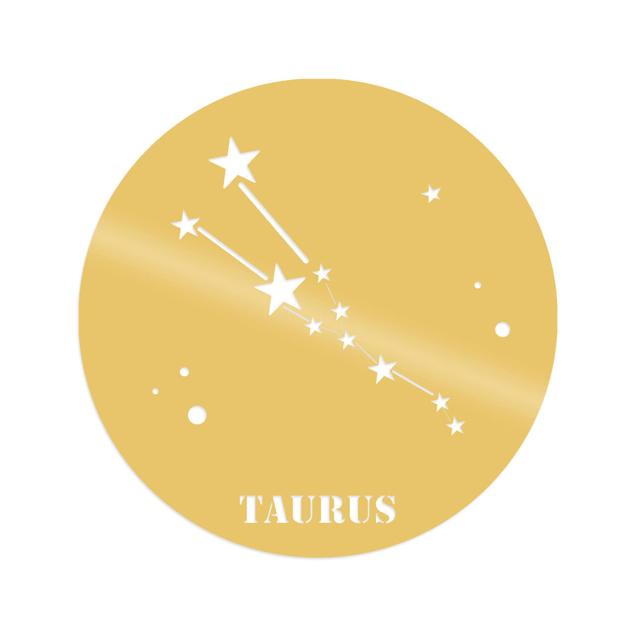 Decoratiune de perete, Taurus Horoscope, Metal, Dimensiune: 48 x 48 cm, Auriu