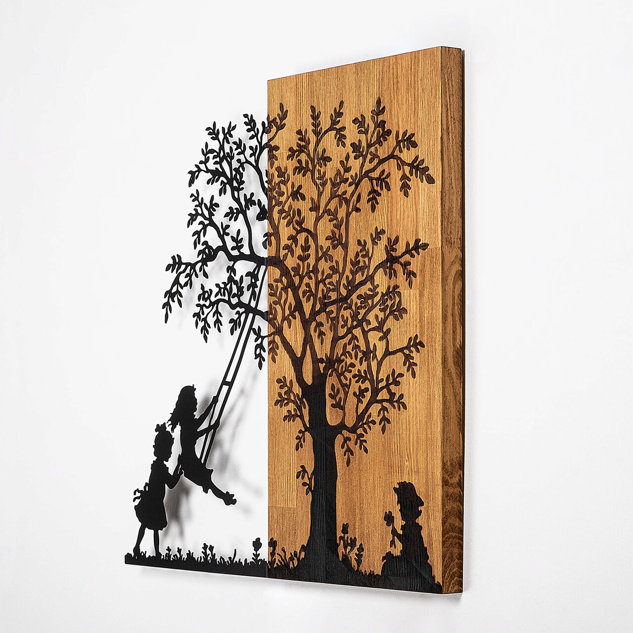 Decoratiune de perete, The Tree And The Shaking Children, 50% lemn/50% metal, Dimensiune: 59 x 58 cm, Nuc / Negru