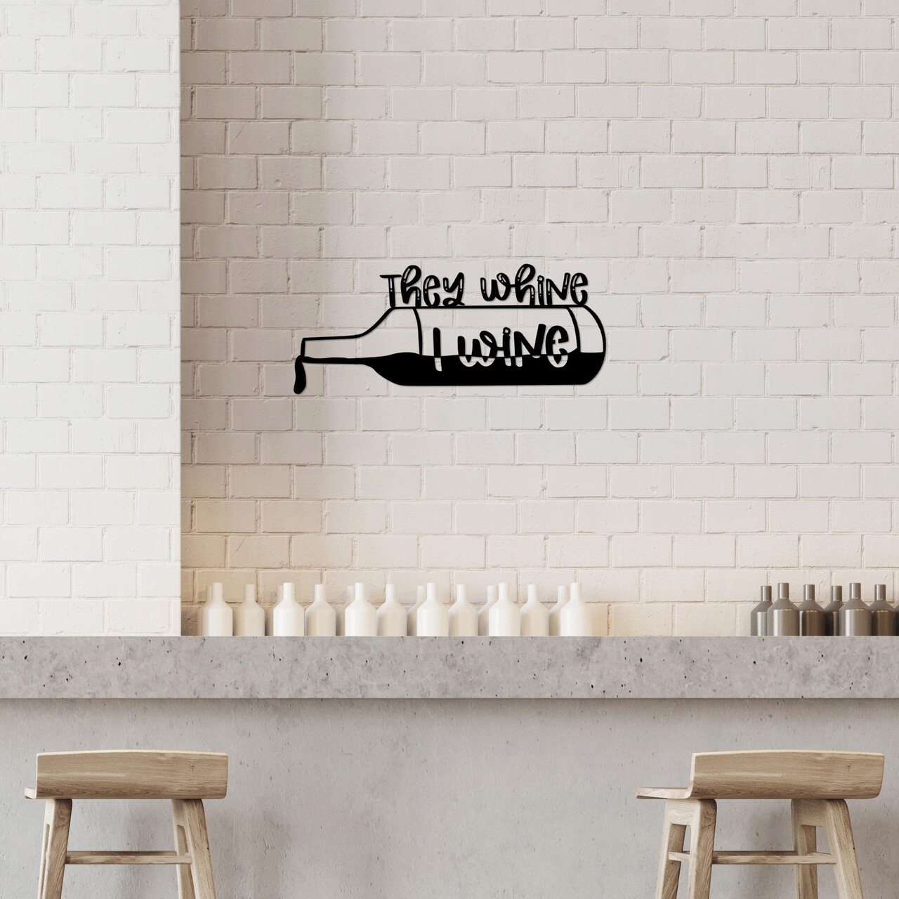 Decoratiune de perete, They Whine I Wine, Metal, Dimensiune: 67 x 28 cm, Negru