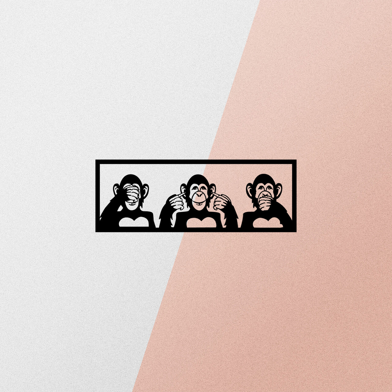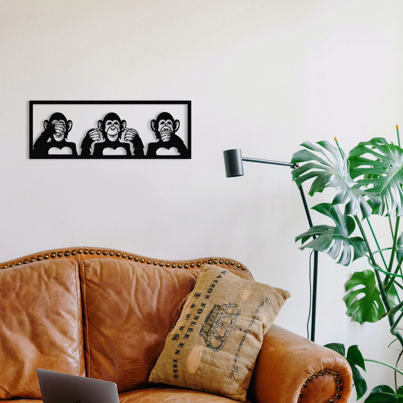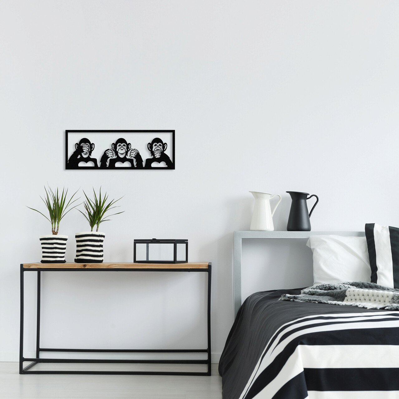 Decoratiune de perete, Three Monkeys-S, metal, 50 x 18 cm, negru