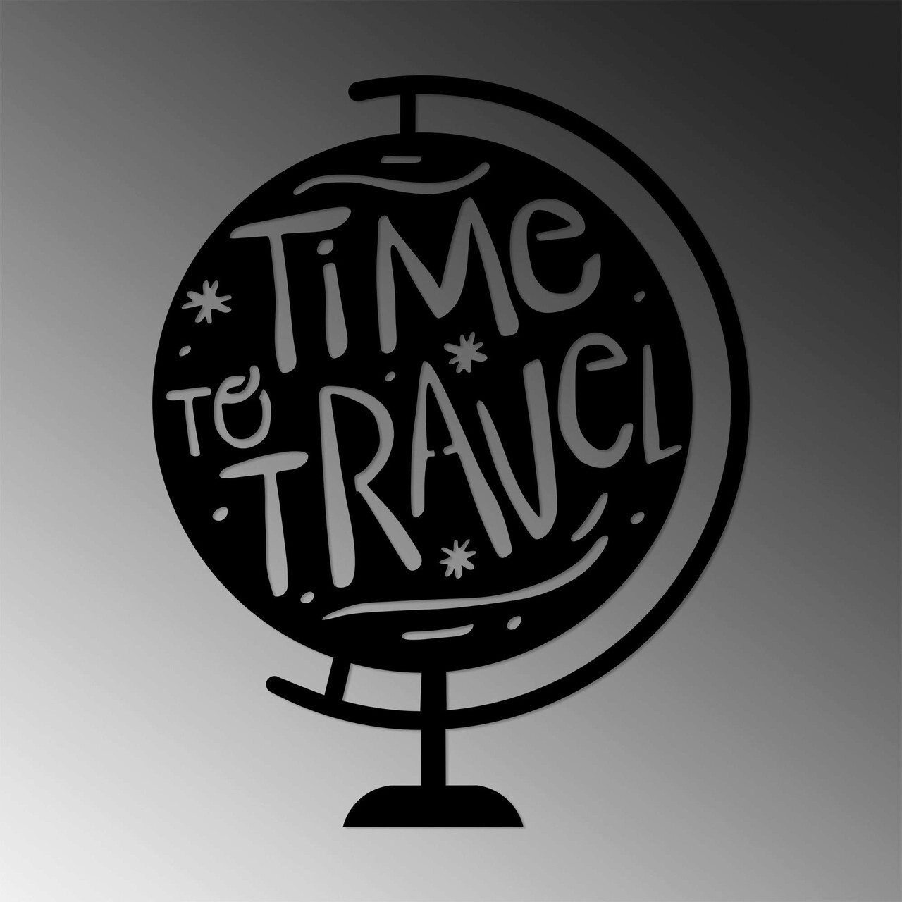 Decoratiune de perete, Time To Travel, Metal, Dimensiune: 55 x 70 cm, Negru