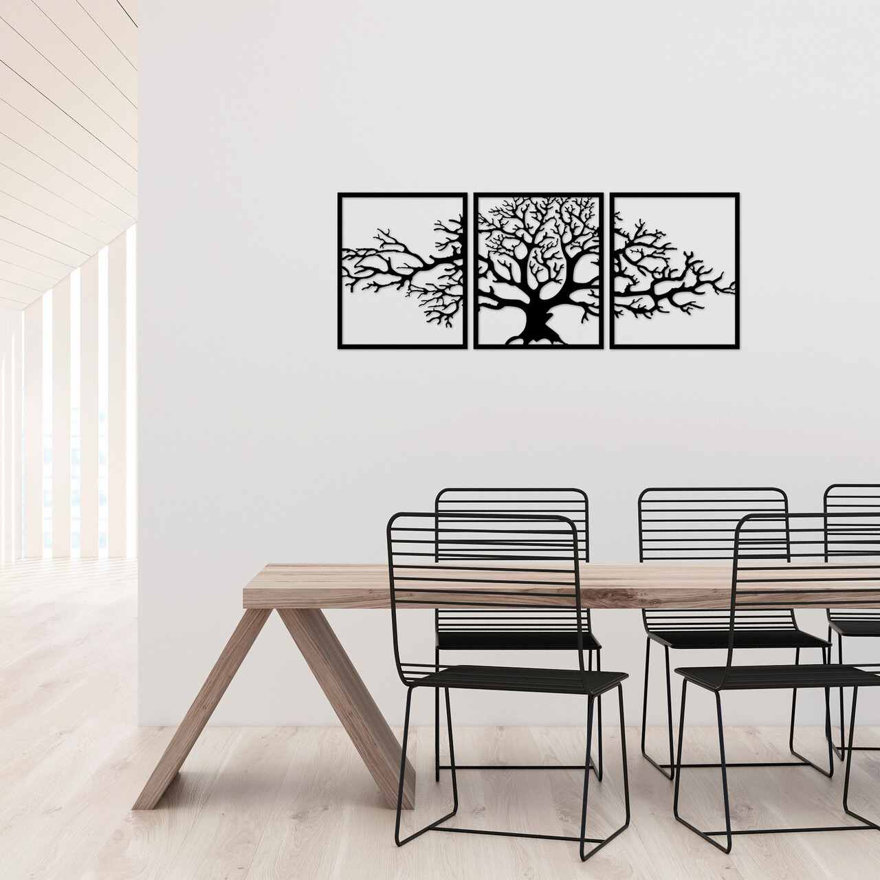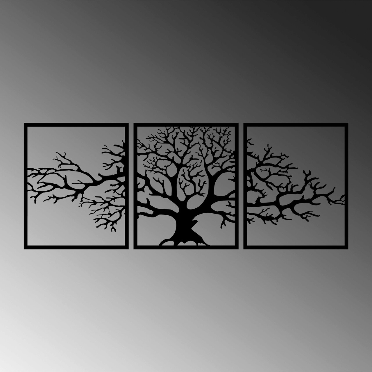Decoratiune de perete, Tree 10, Metal, 49 x 60 cm, 3 piese, Negru