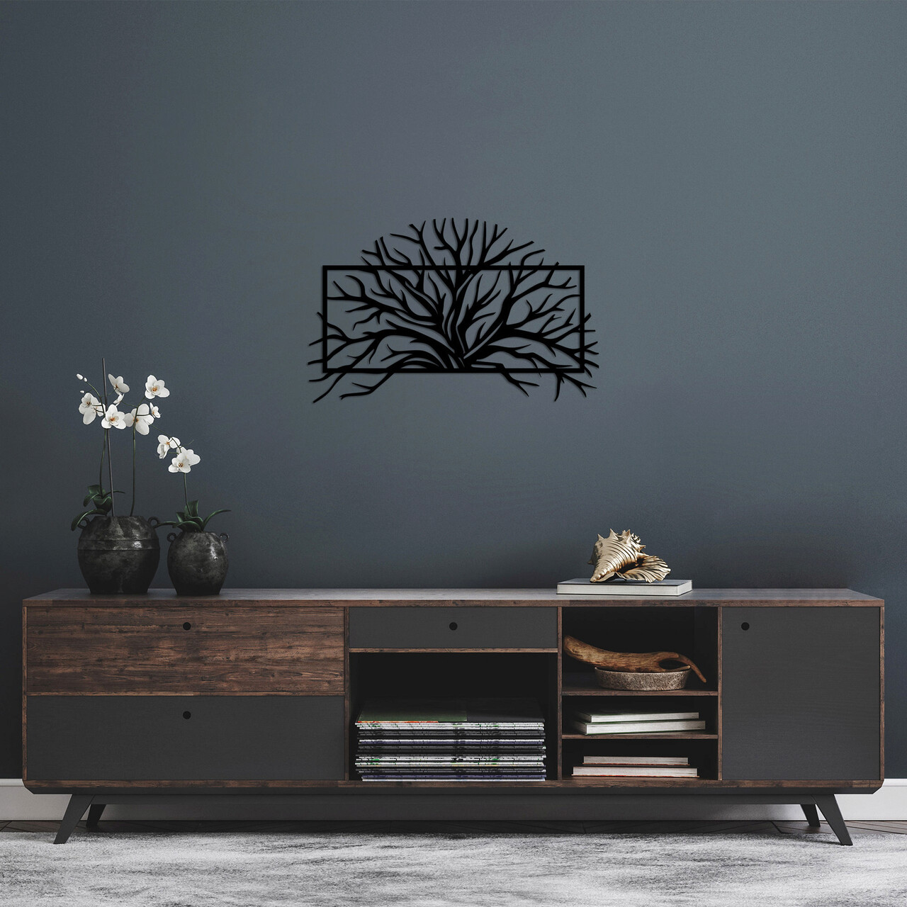 Decoratiune de perete, Tree 4, Metal, Dimensiune: 70 x 44 cm, Negru