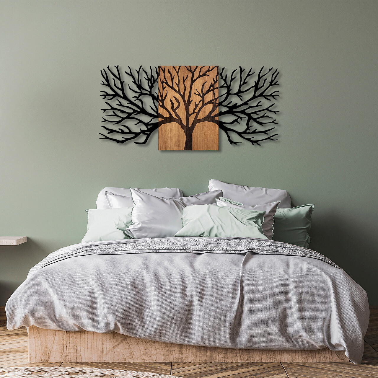 Decoratiune de perete, Tree, 50% lemn/50% metal, Dimensiune: 150 x 3 x 70 cm, Nuc negru