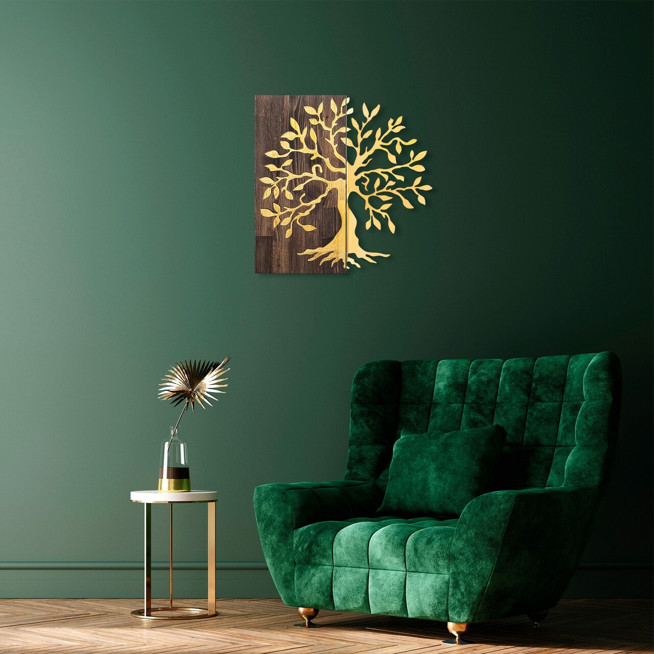 Decoratiune de perete, Tree, 50% lemn/50% metal, Dimensiune: 58 x 58 cm, Nuc / Aur
