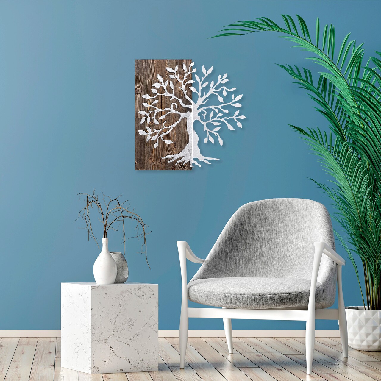 Decoratiune de perete, Tree, 50% lemn/50% metal, Dimensiune: 58 x 58 cm, Nuc / Argint
