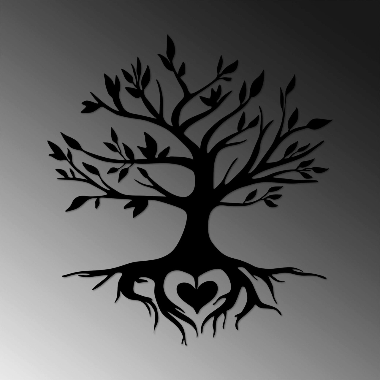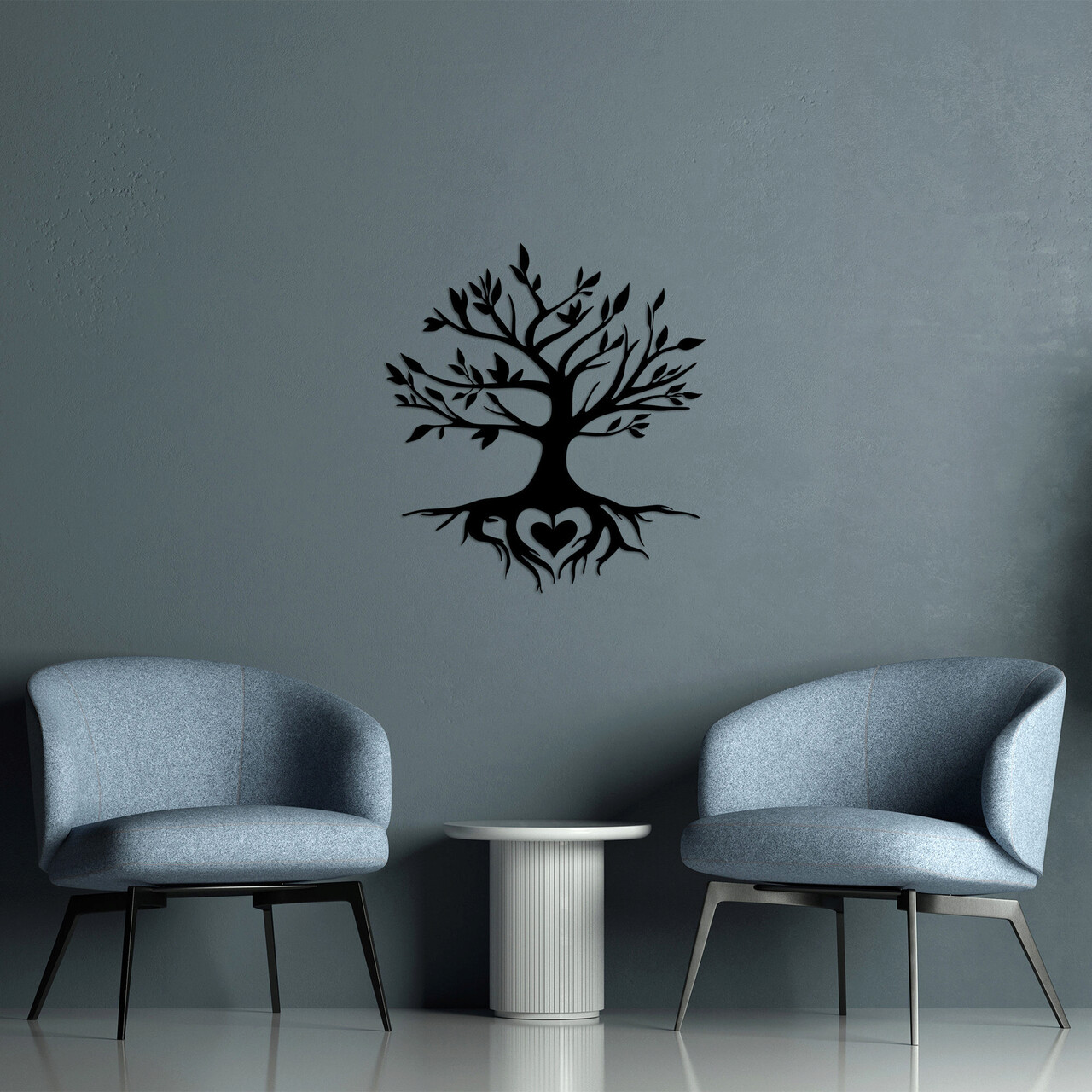 Decoratiune de perete, Tree And Heart, Metal, Dimensiune: 67 x 79 cm, Negru