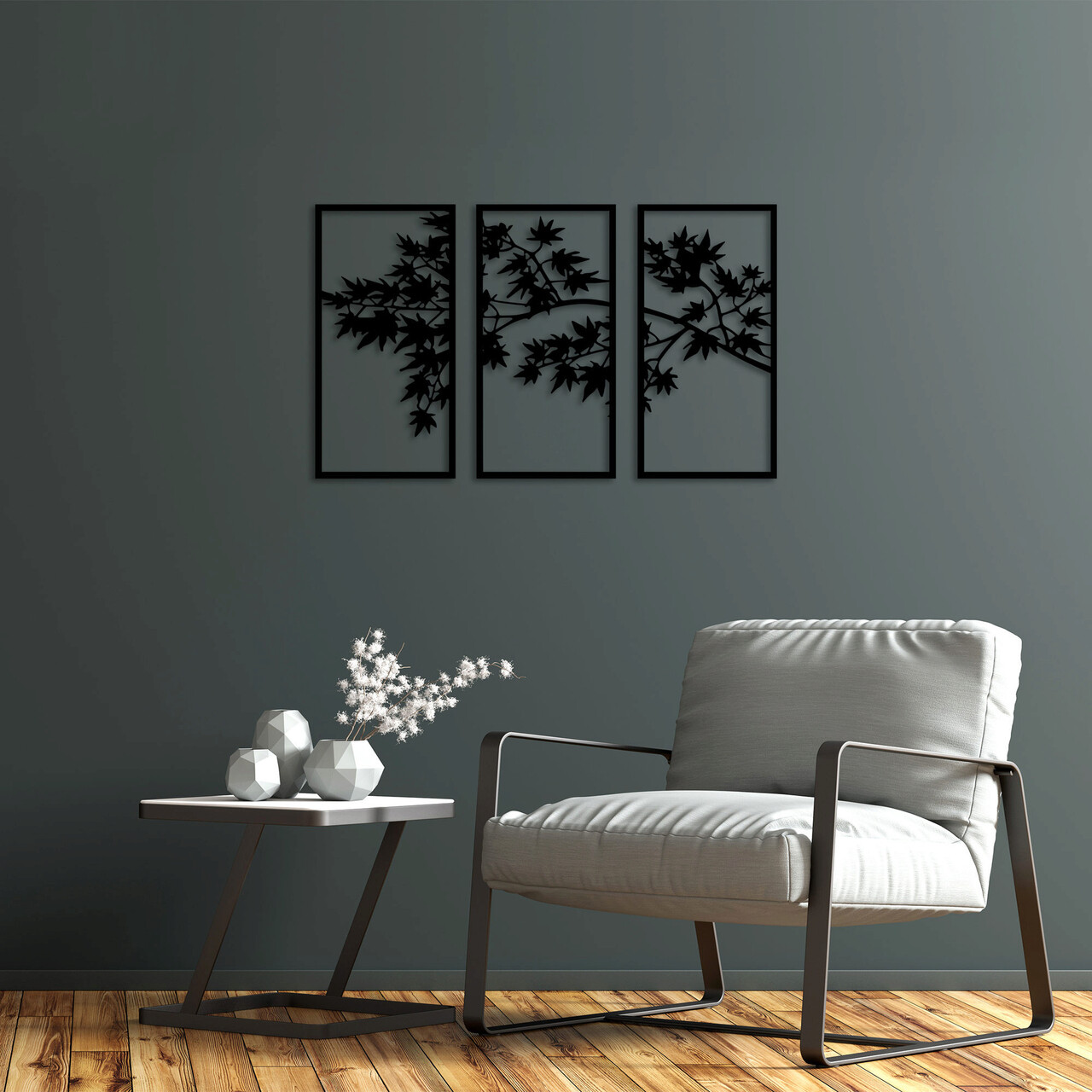 Decoratiune de perete, Tree Branch, Metal, 34 x 67 cm, 3 piese, Negru