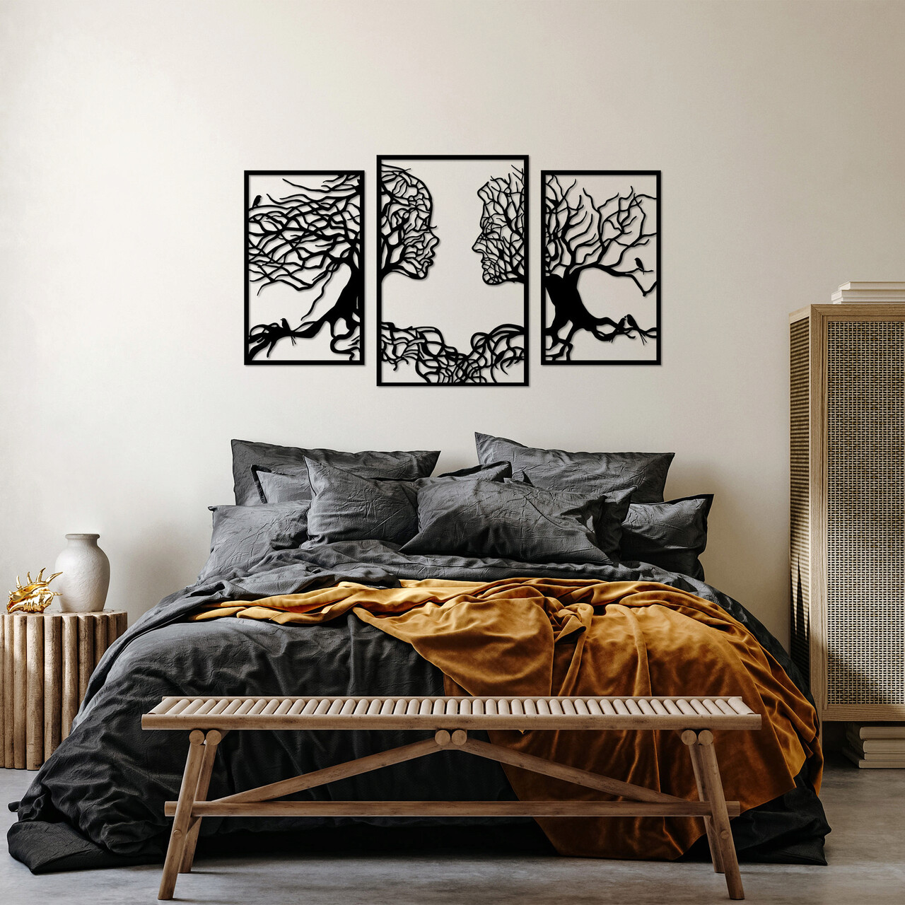 Decoratiune de perete, Tree Love, Metal, 50 x 76 cm, 3 piese, Negru
