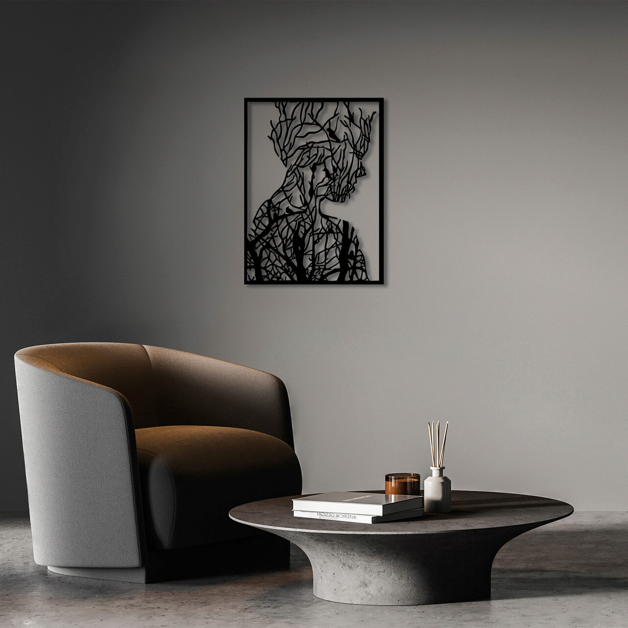 Decoratiune de perete, Tree Man, Metal, Dimensiune: 52 x 70 cm, Negru