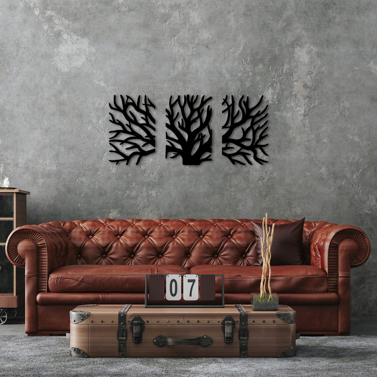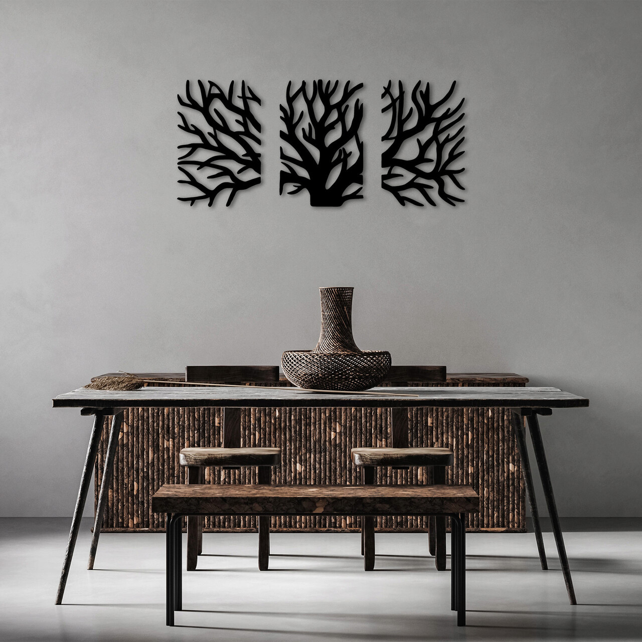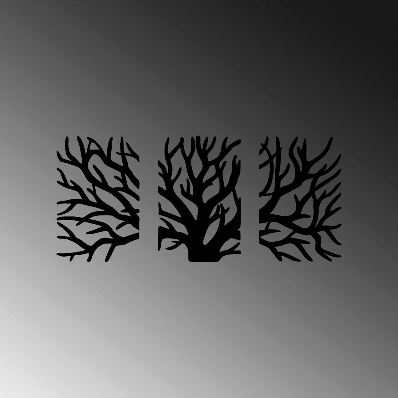 Decoratiune de perete, Tree, Metal, 46 x 70 cm, 3 piese, Negru