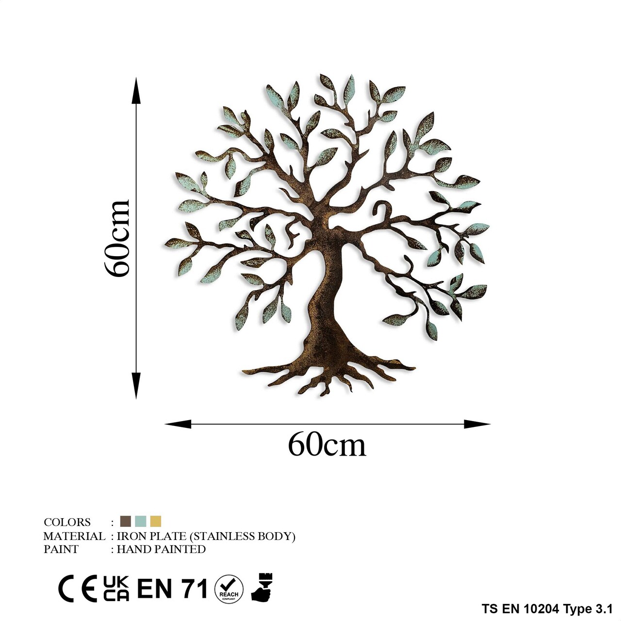Decoratiune de perete, Tree, Metal, 60 x 60 cm, Multicolor