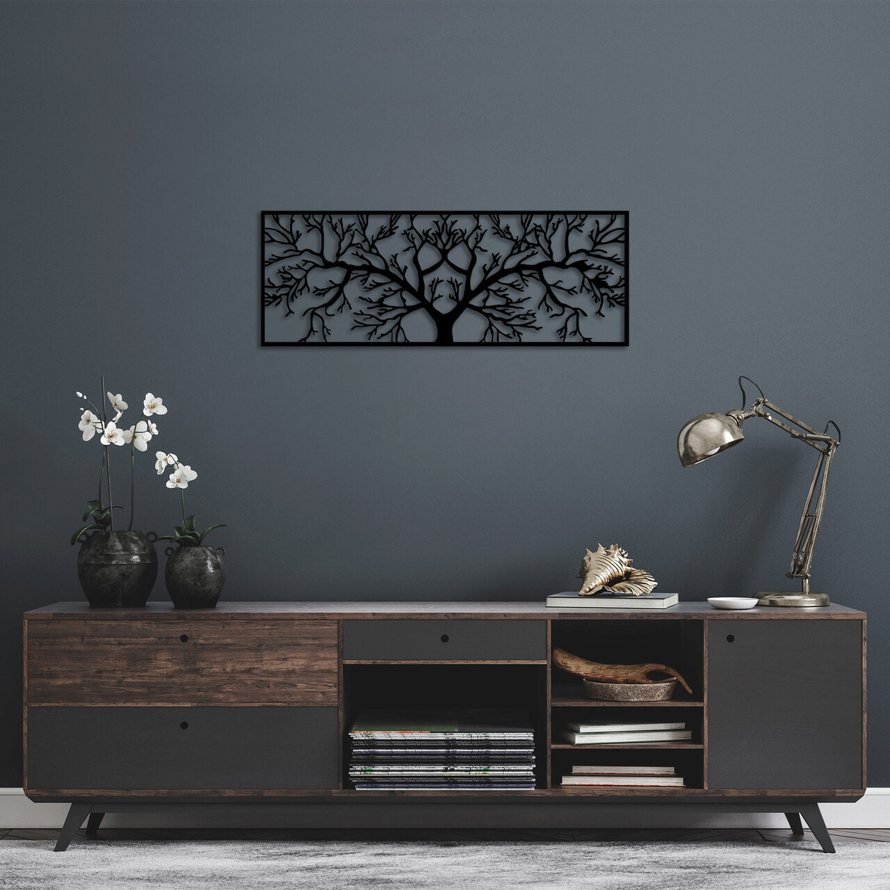 Decoratiune de perete, Tree, Metal, Dimensiune: 82 x 30 cm, Negru
