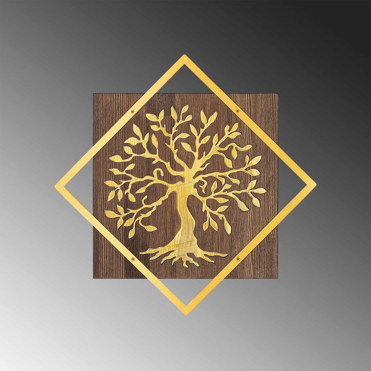 Decoratiune de perete, Tree v2, 50% lemn/50% metal, Dimensiune: 54 x 54 cm, Nuc / Aur