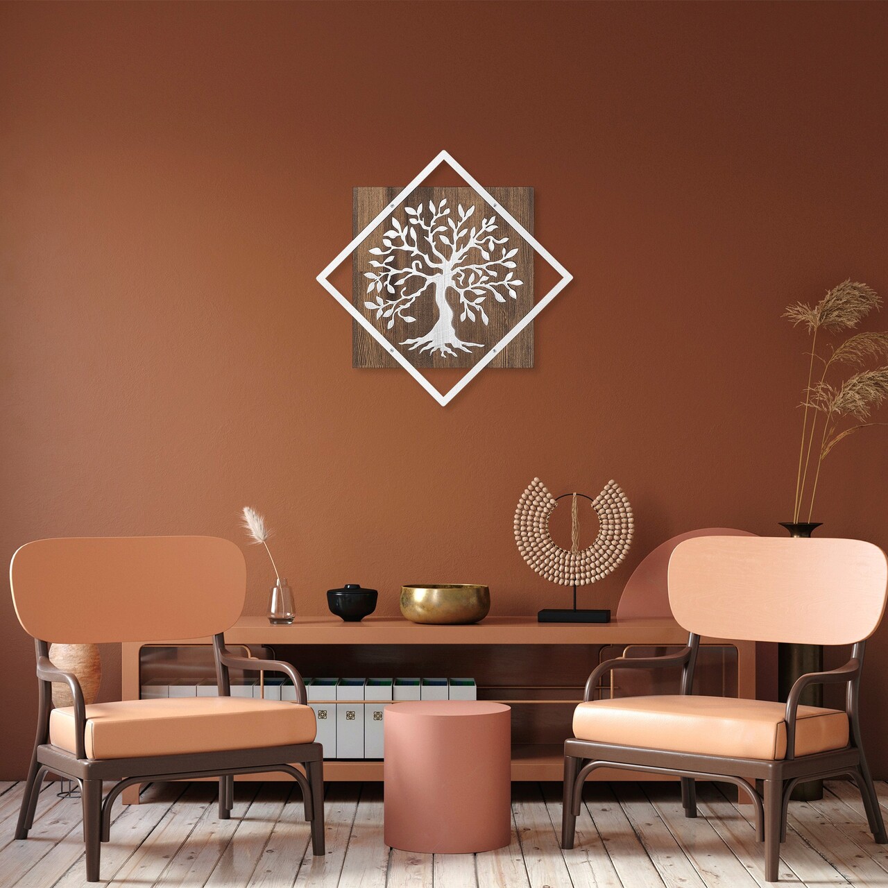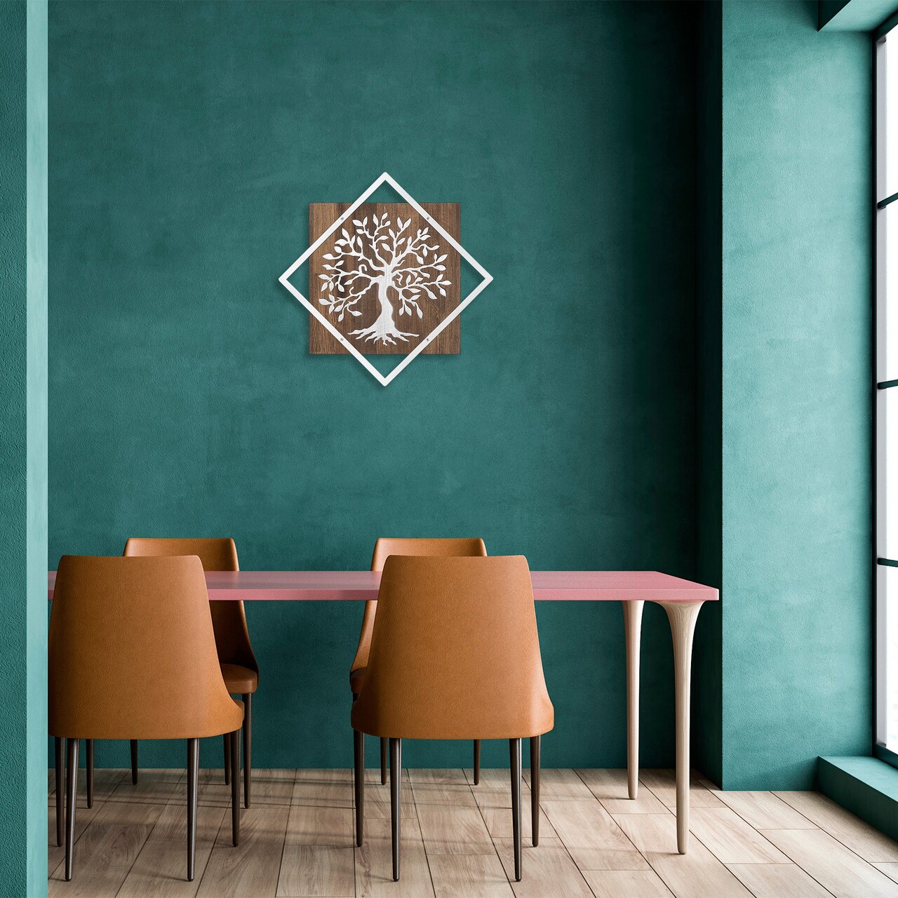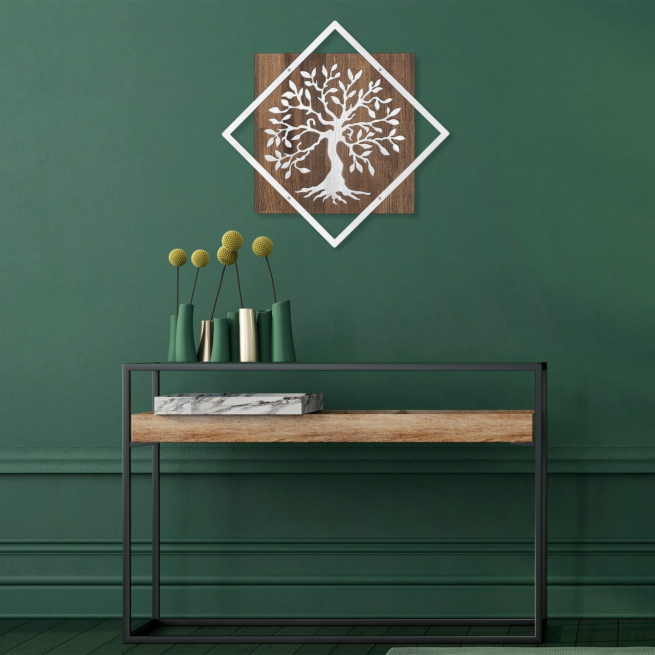 Decoratiune de perete, Tree v2, 50% lemn/50% metal, Dimensiune: 54 x 54 cm, Nuc / Argint