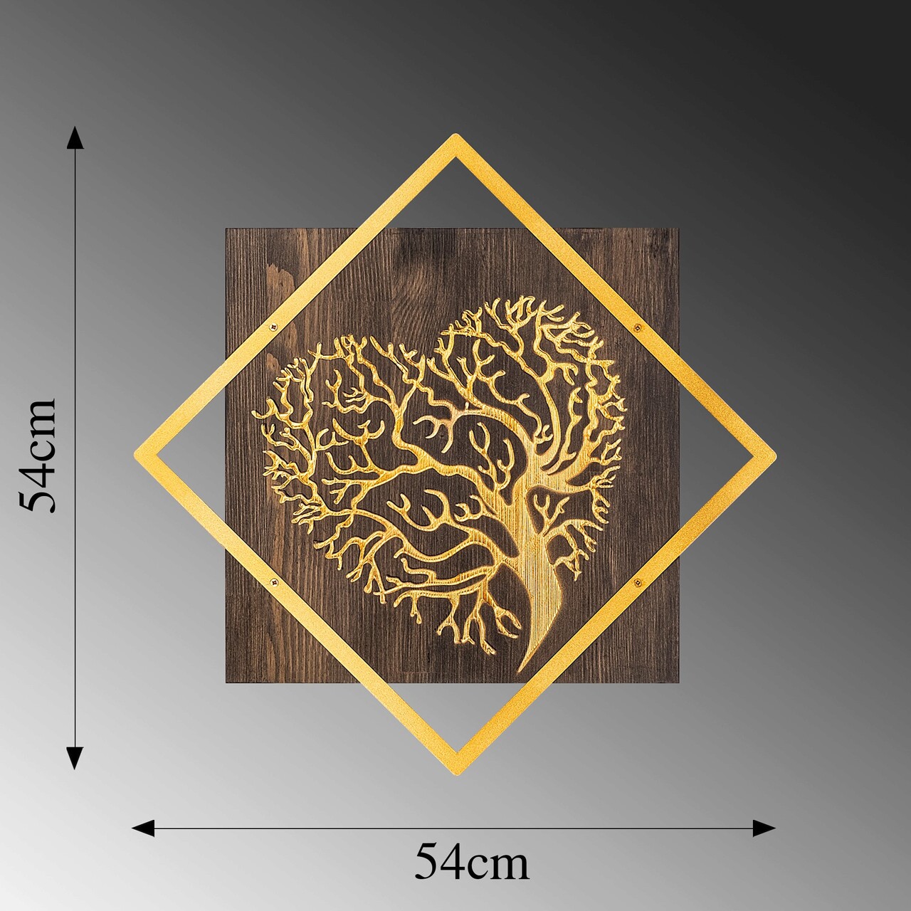 Decoratiune de perete, Tree v3, 50% lemn/50% metal, Dimensiune: 54 x 54 cm, Nuc / Aur