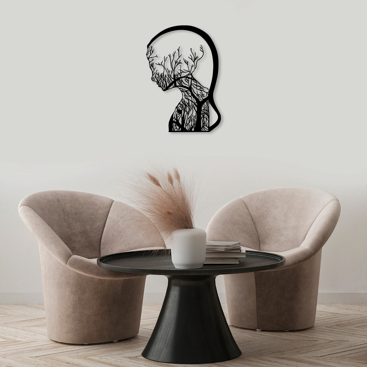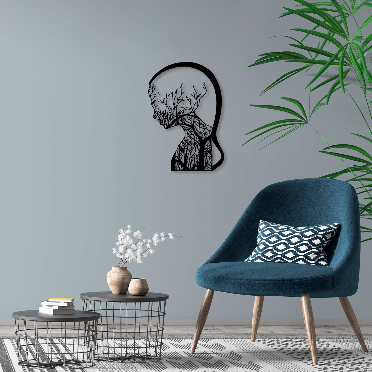 Decoratiune de perete, Tree Woman, Metal, Dimensiune: 47 x 68 cm, Negru