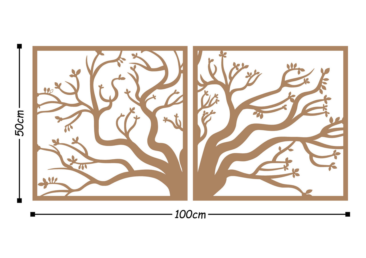 Decoratiune de perete, Tree2, Metal, 100 x 50 cm, Cupru