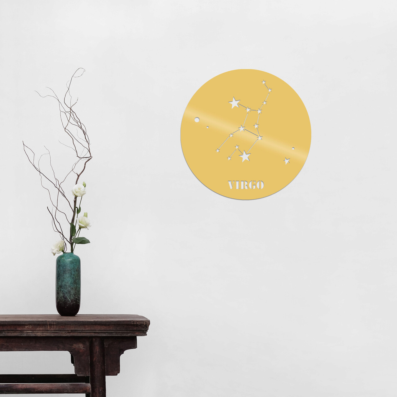 Decoratiune de perete, Vırgo Horoscope, Metal, Dimensiune: 48 x 48 cm, Auriu