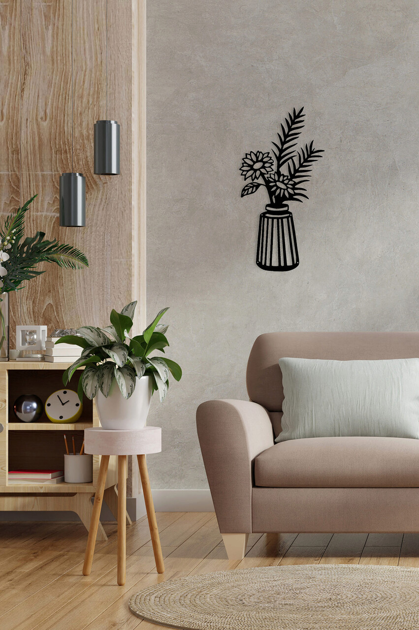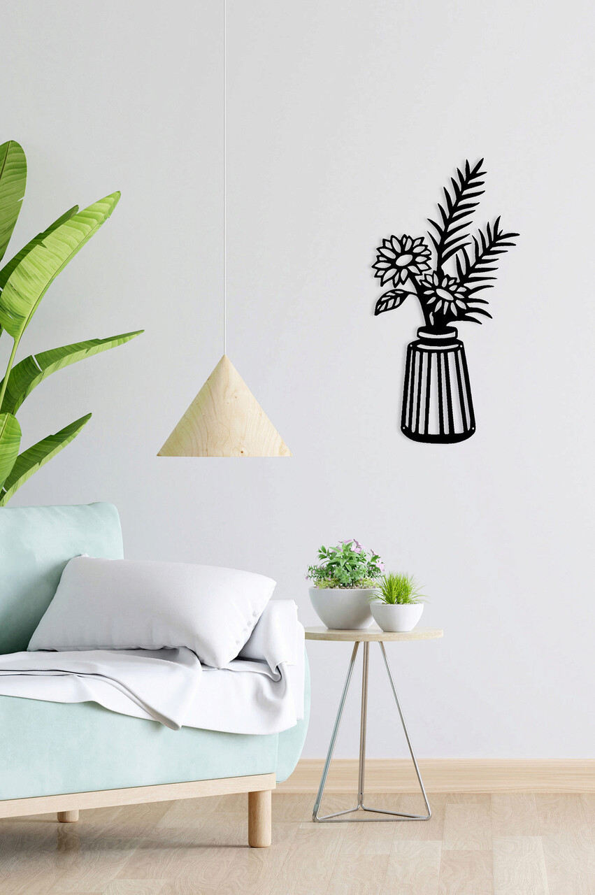 Decoratiune de perete, Vase 2, Metal, 10 x 40 cm, Negru