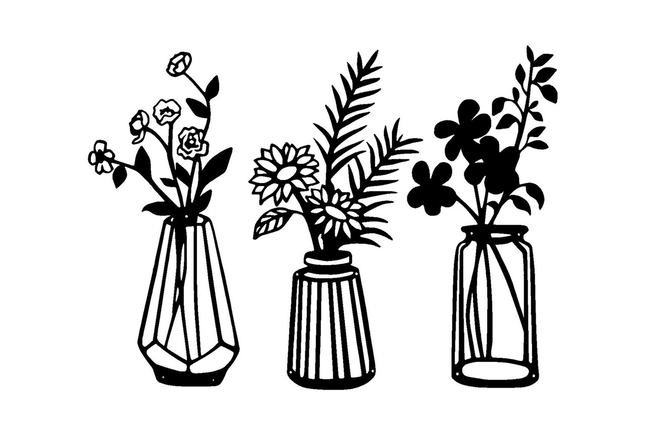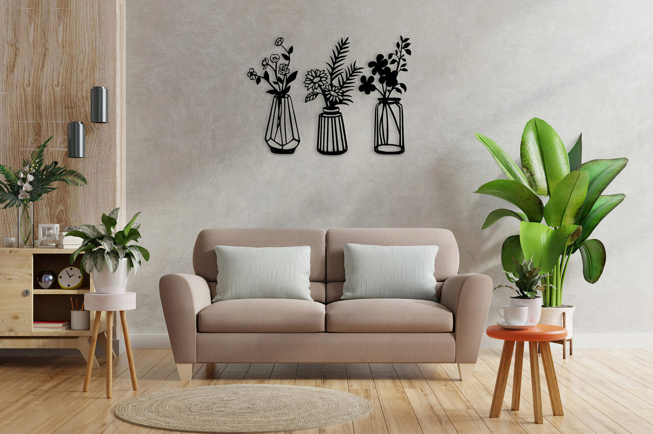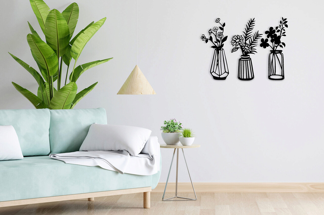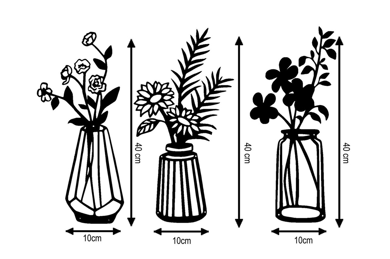 Decoratiune de perete, Vase, Metal, 10 x 40 cm, 3 piese, Negru