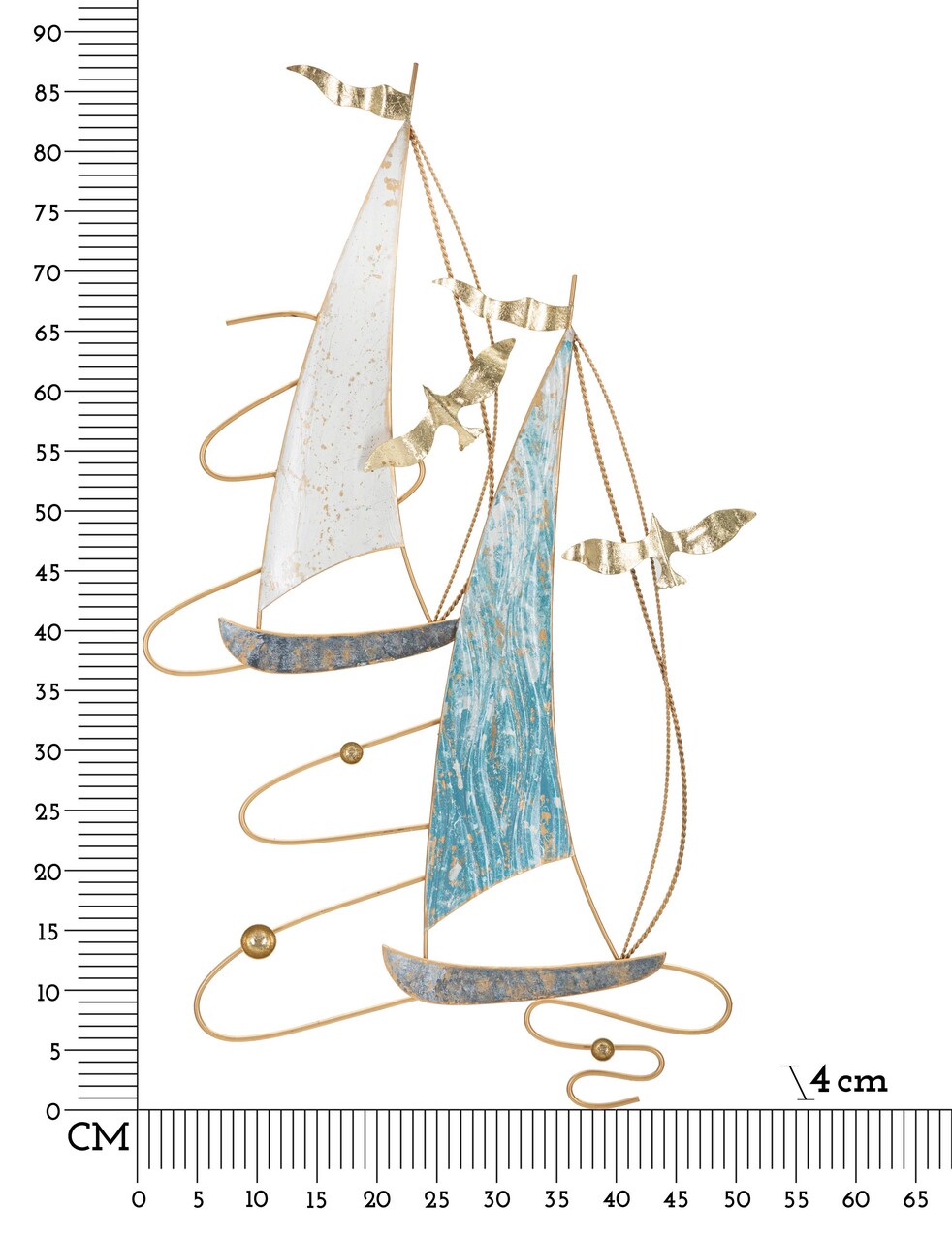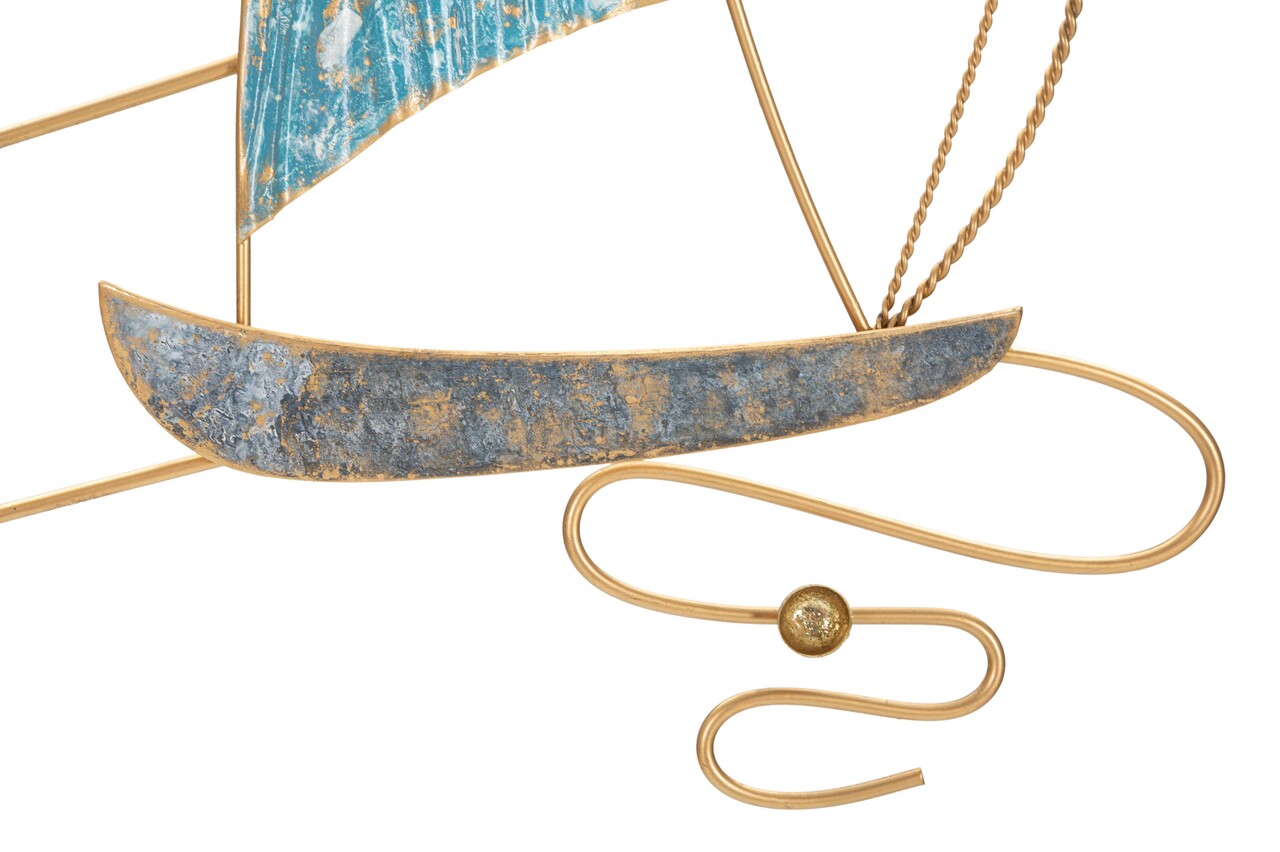 Panou decorativ de perete 3D din fier, format din barci cu panze si pescarusi pe mare.