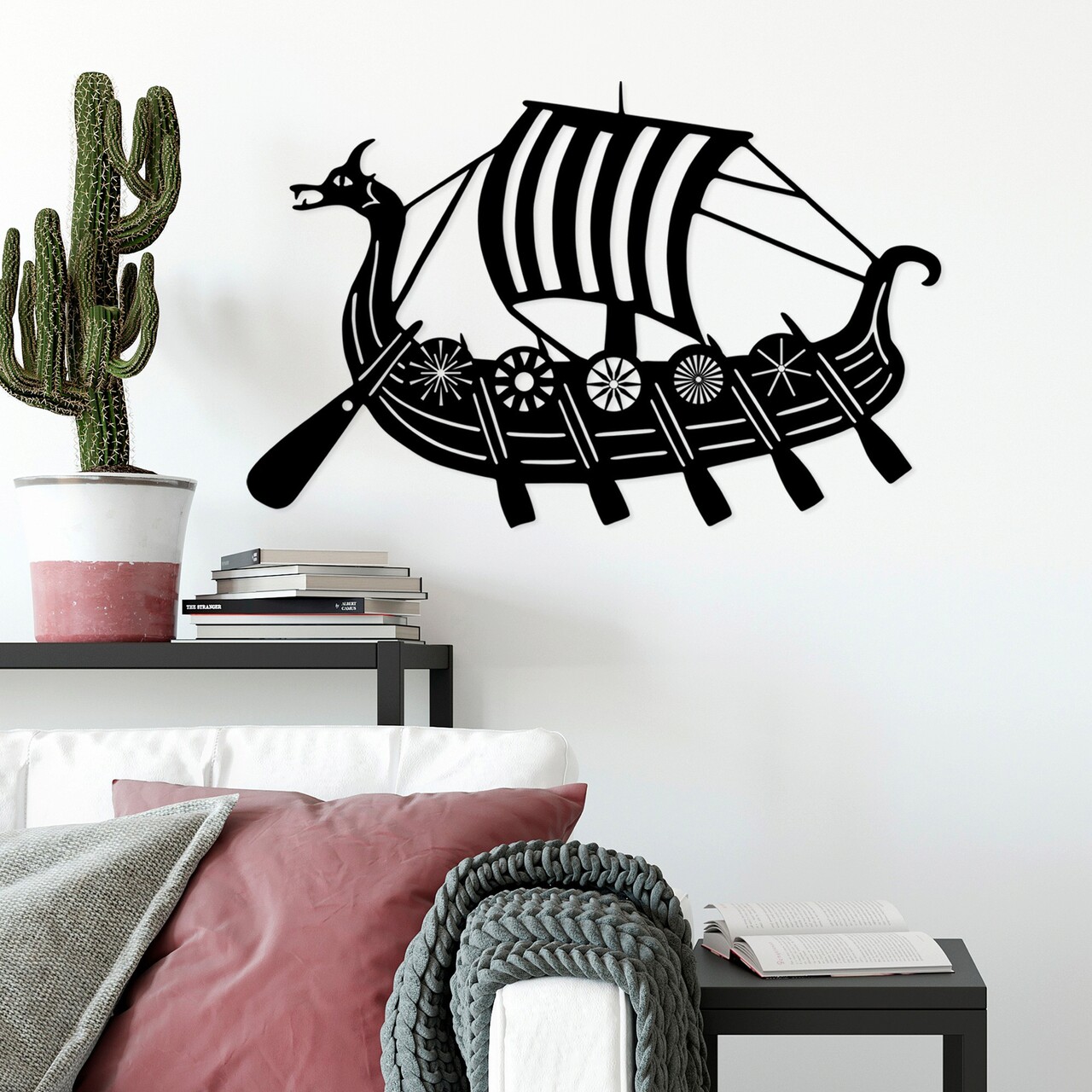 Decoratiune de perete, Viking, Metal, Dimensiune: 70 x 45 cm, Negru