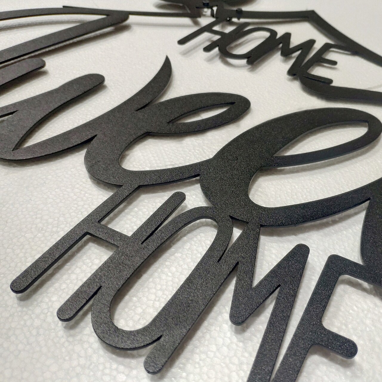Decoratiune de perete, Welcome, Metal, 50 x 70 cm, Negru