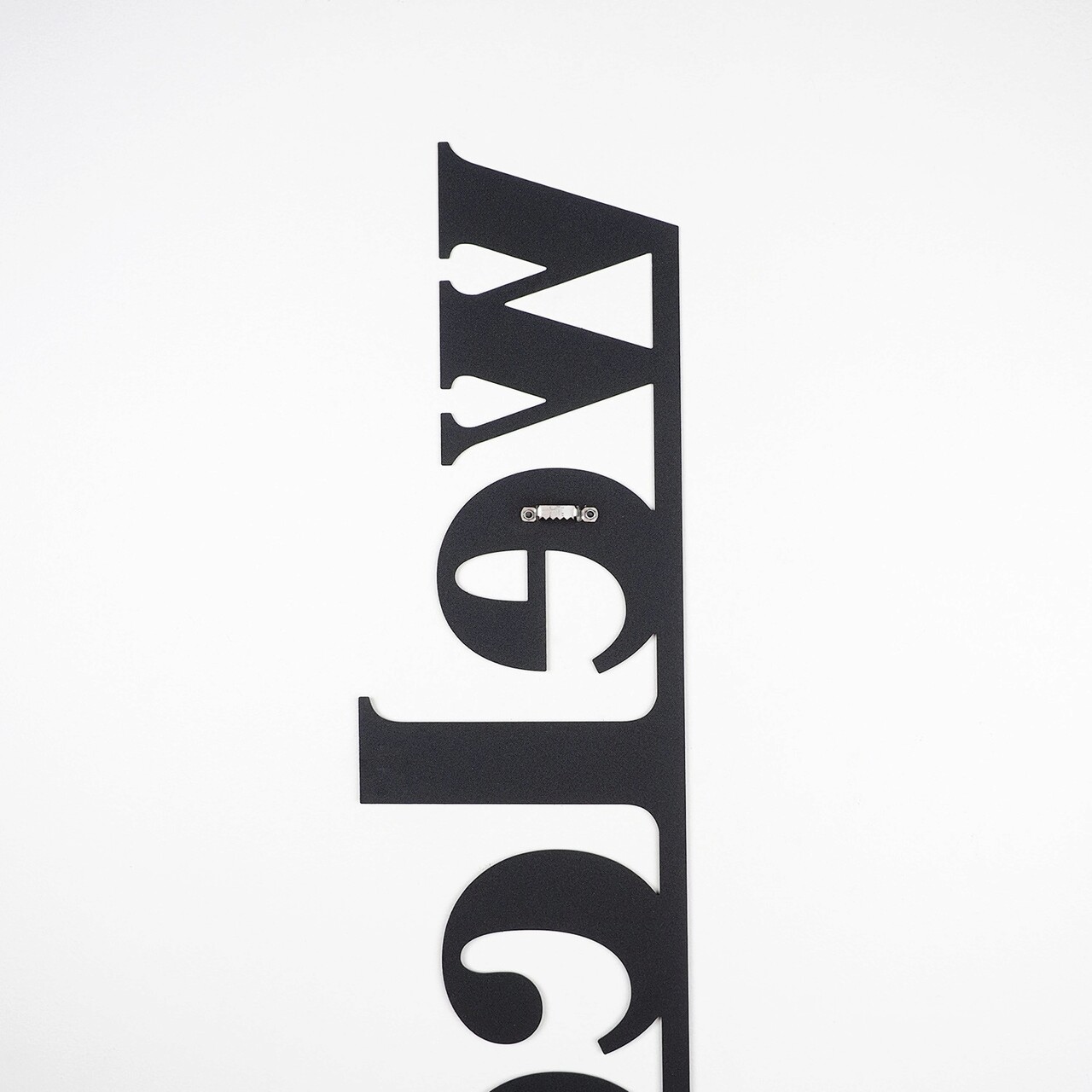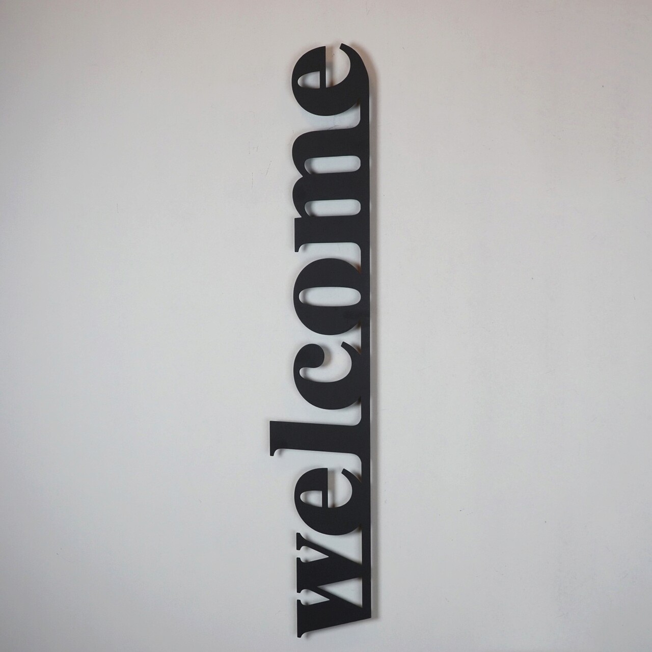Decoratiune de perete, Welcome, Otel, 18 x 98 cm, Negru
