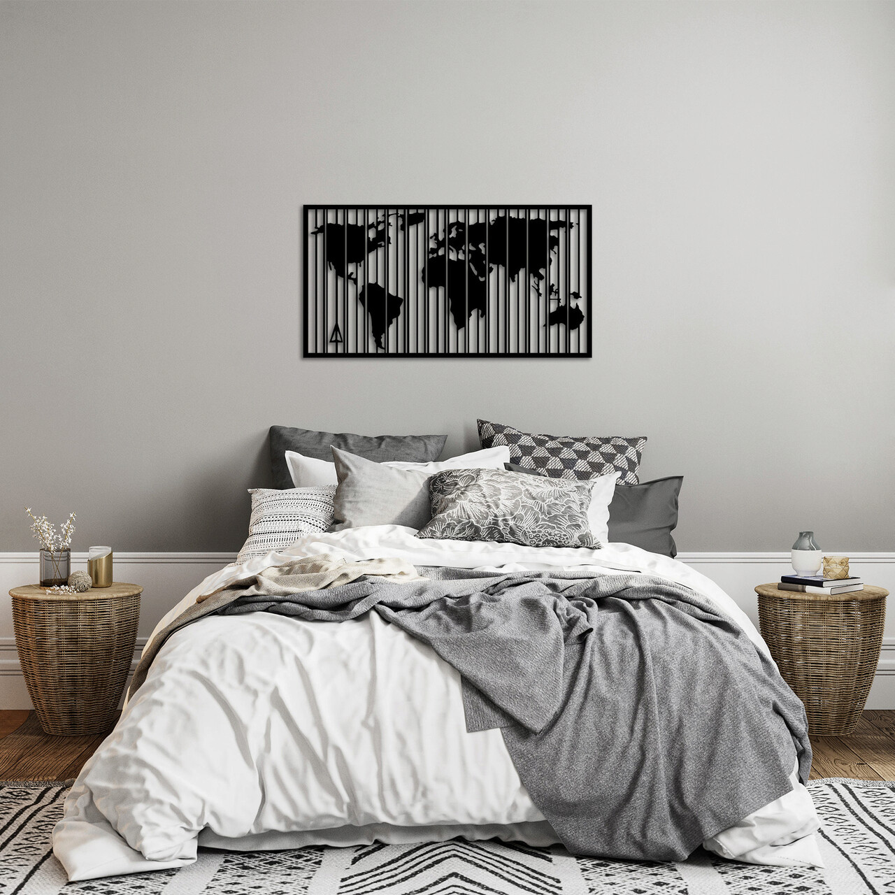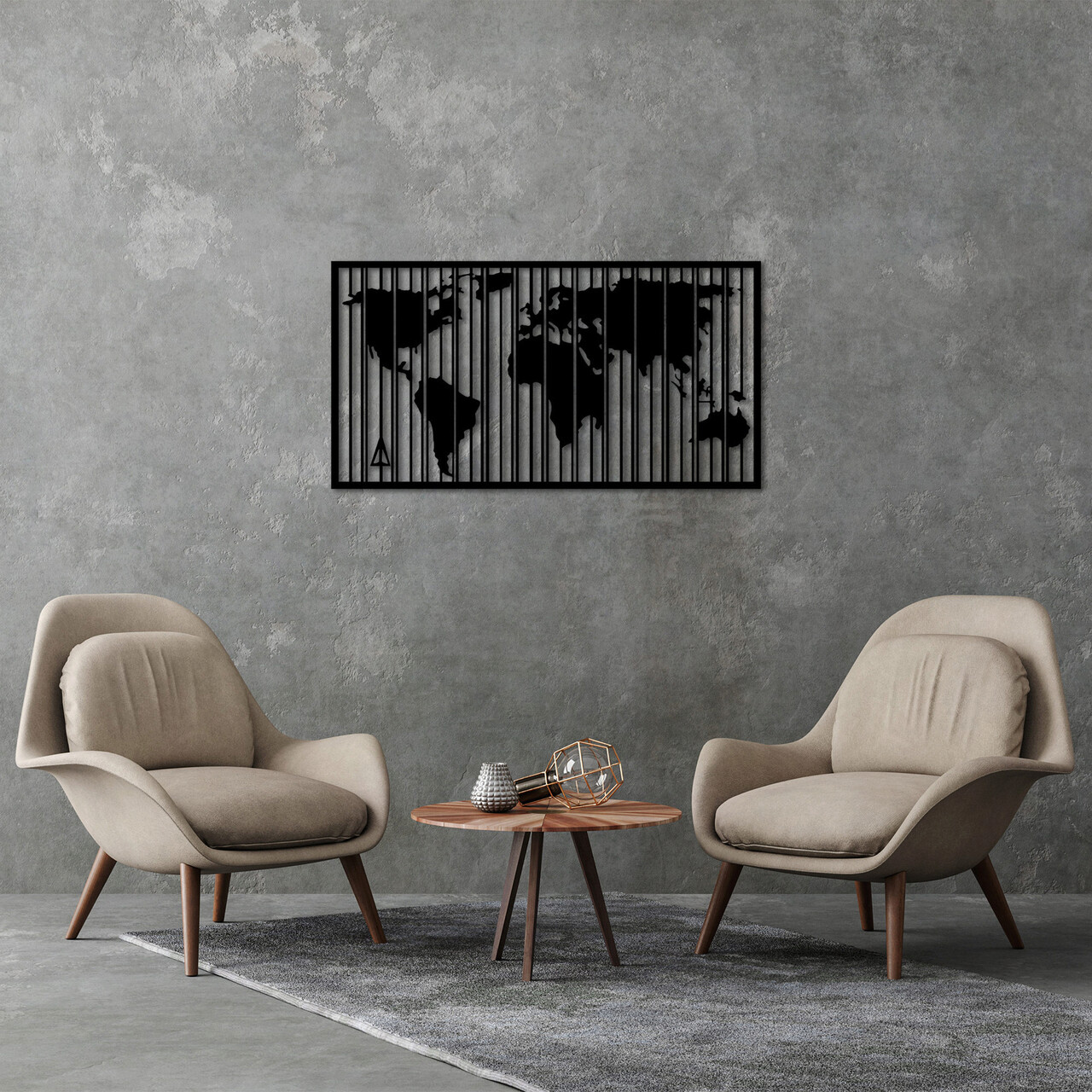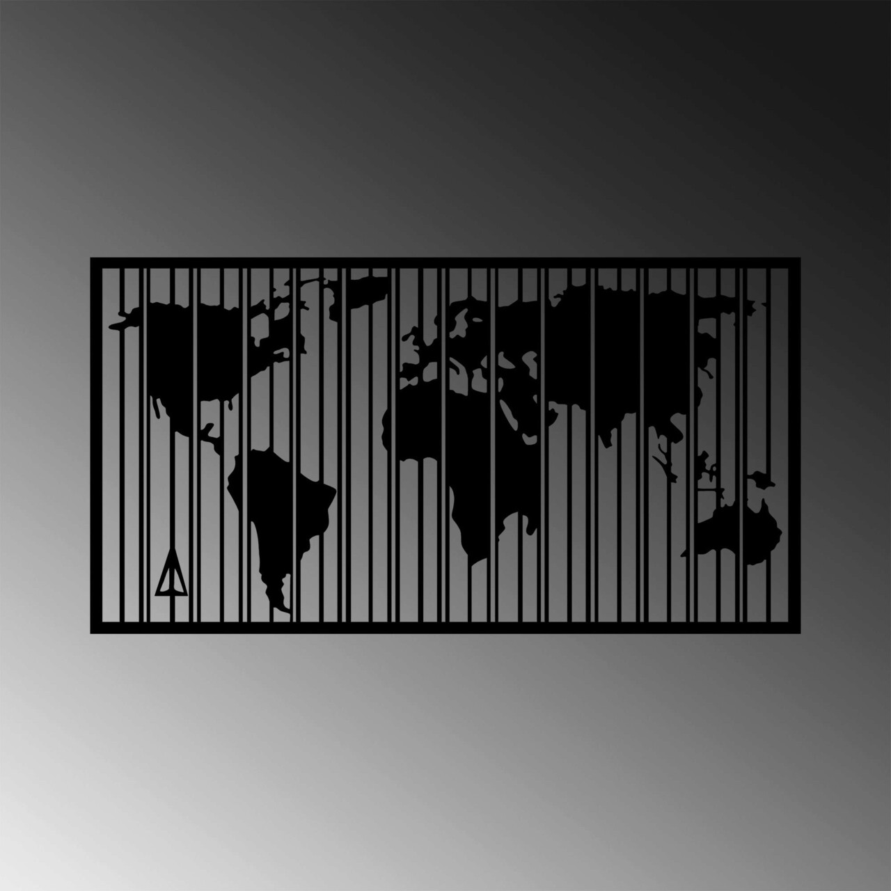 Decoratiune de perete, Wold Map, Metal, Dimensiune: 113 x 60 cm, Negru