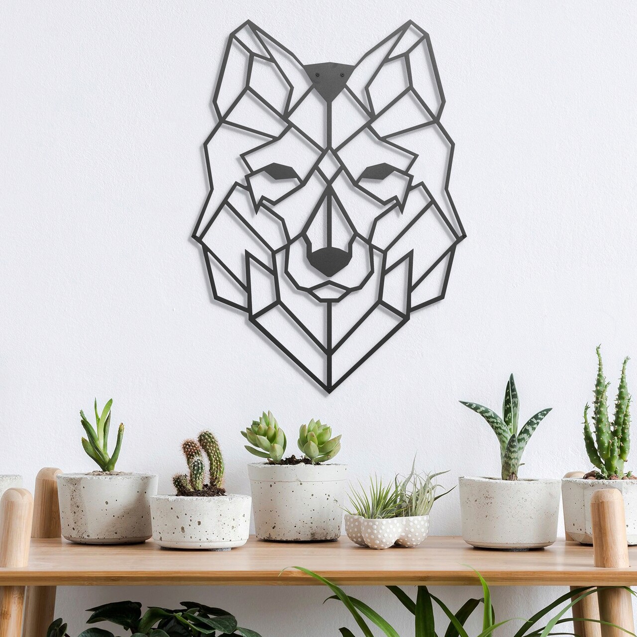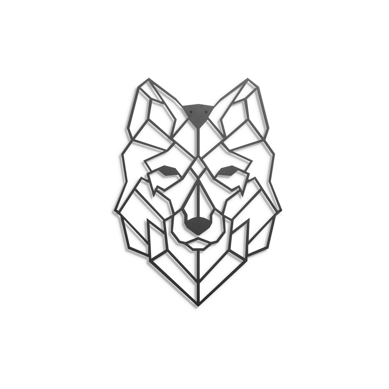 Decoratiune de perete, Wolf, Metal, Dimensiune: 45 x 65 cm, Negru