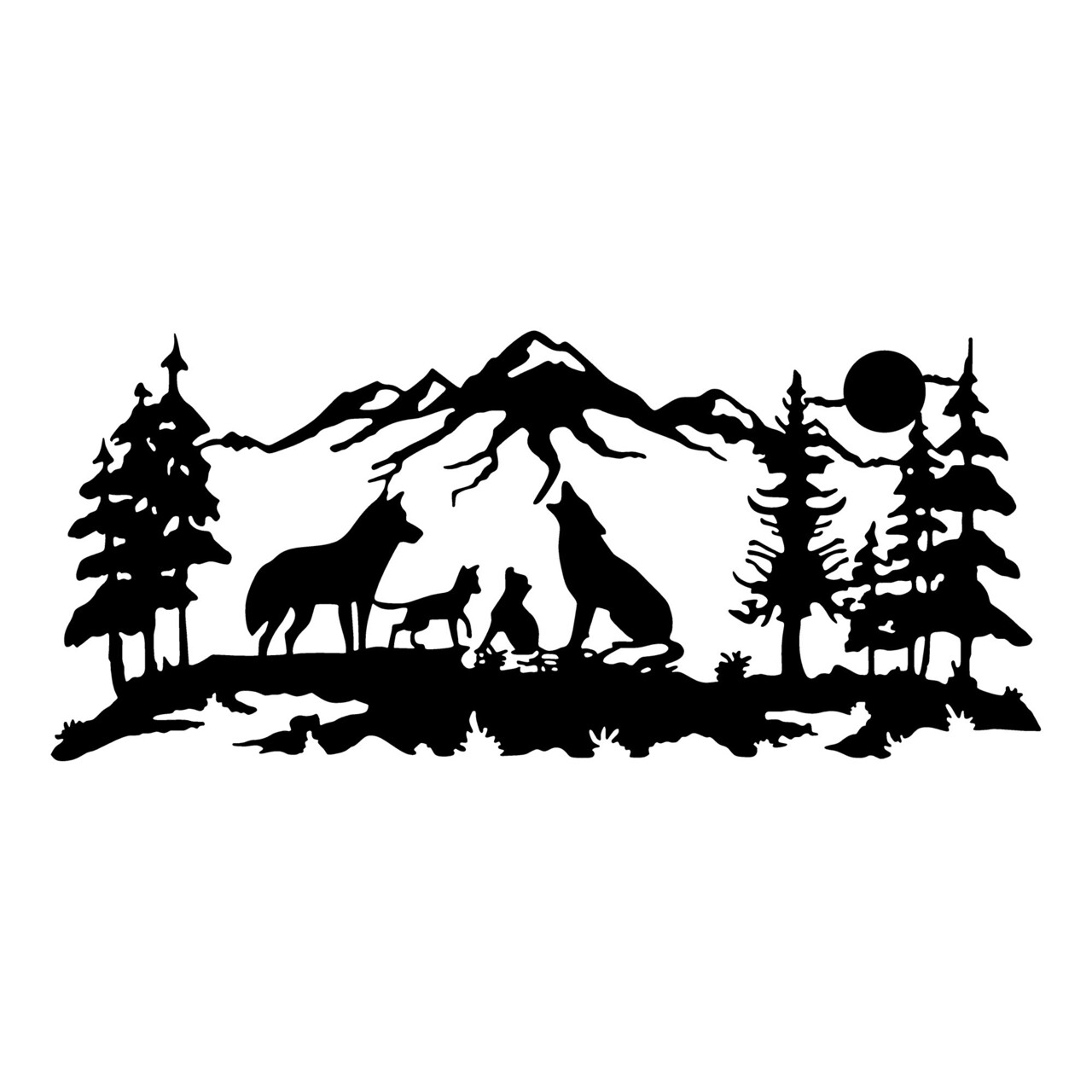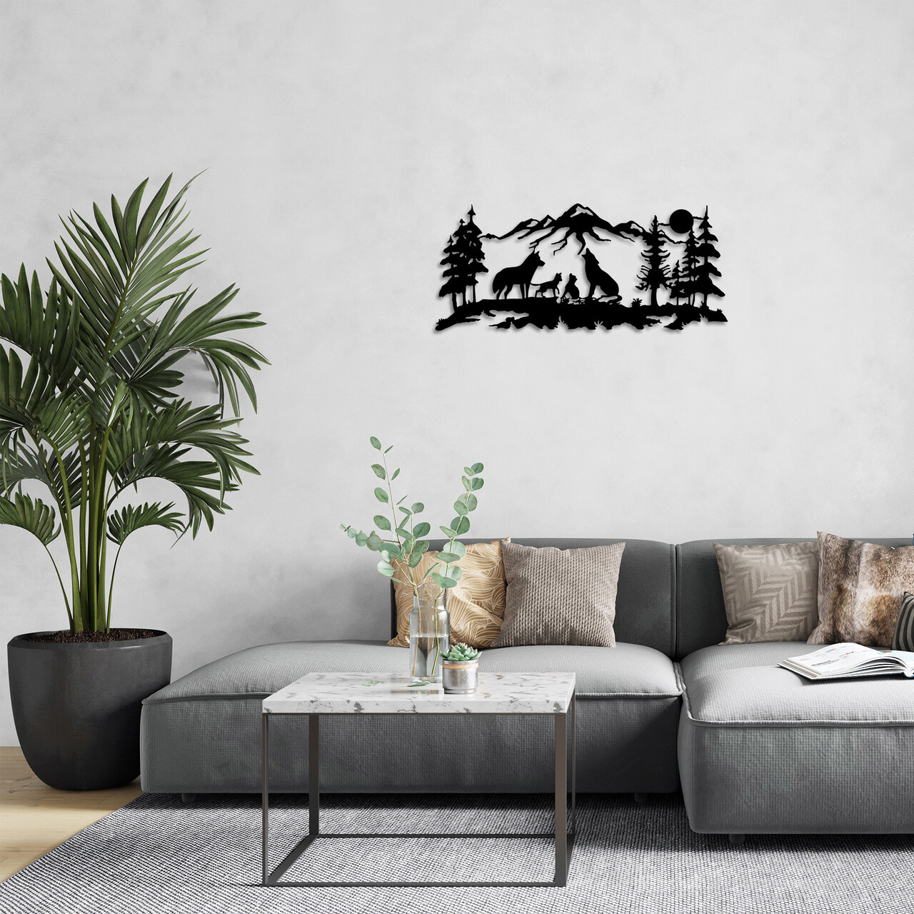 Decoratiune de perete, Wolf Pack, Metal, Dimensiune: 47 x 103 cm, Negru
