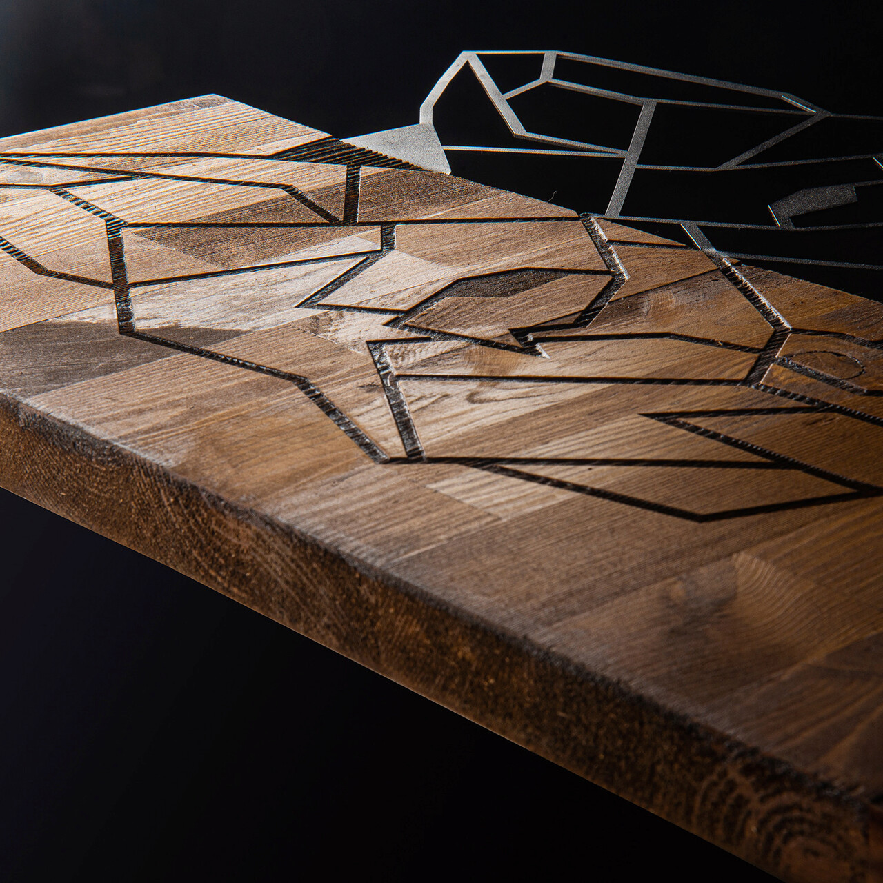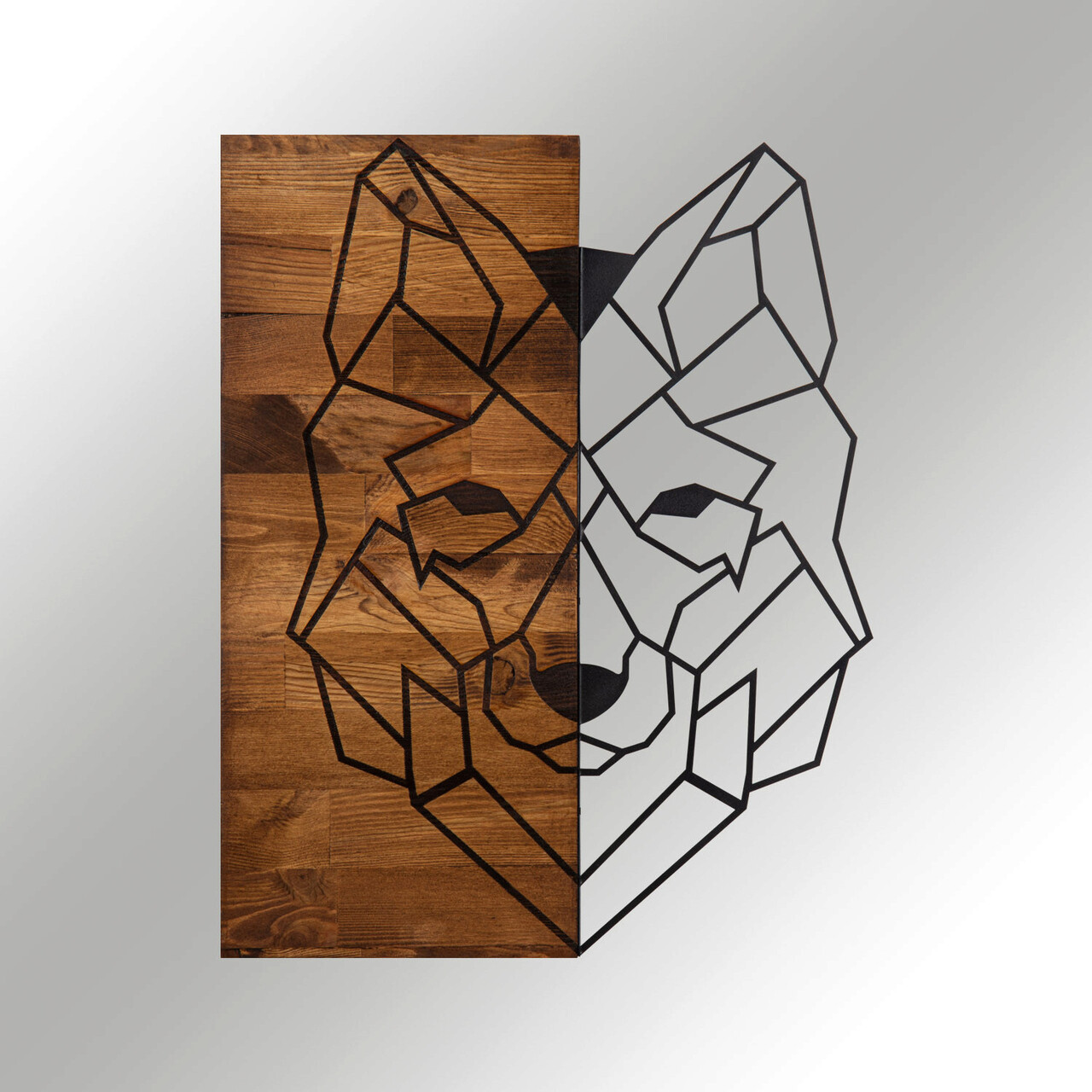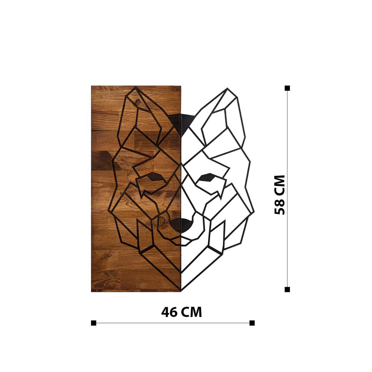 Decoratiune de perete, Wolf1, lemn/metal, 45.5 x 58 cm, negru/maro