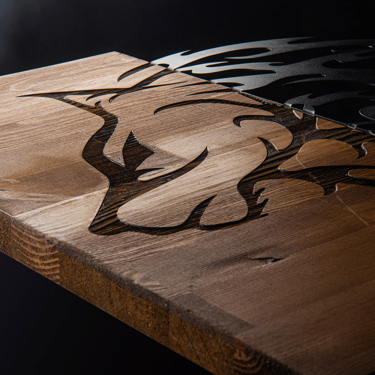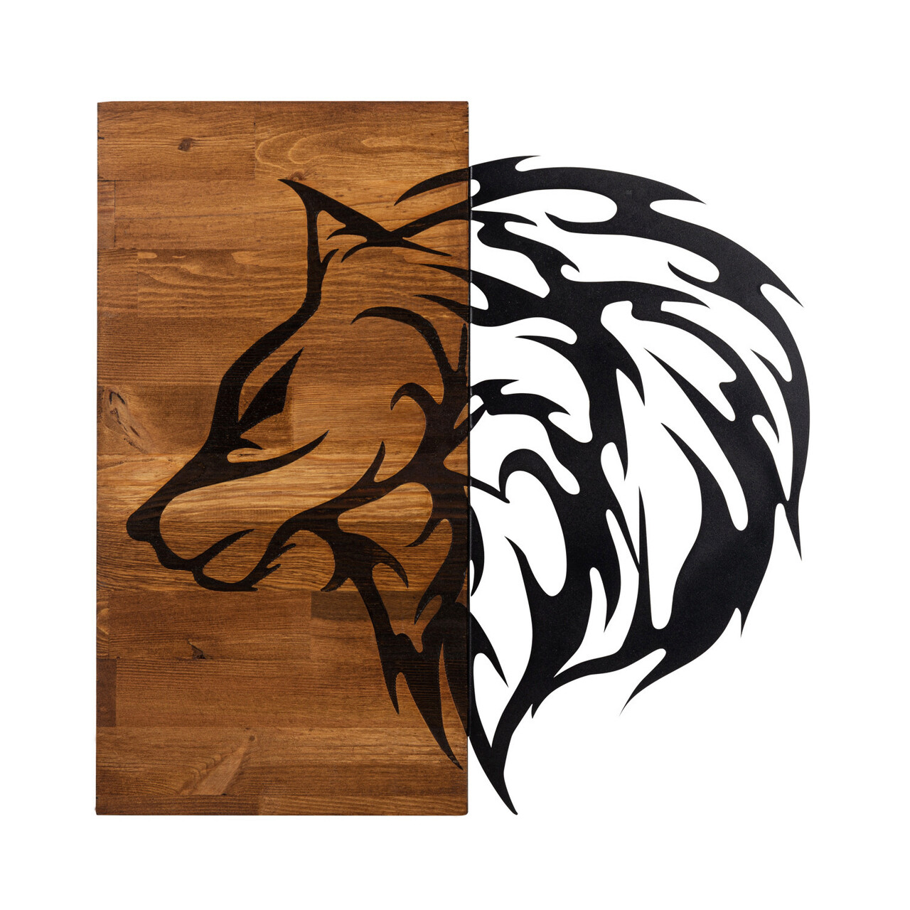 Decoratiune de perete, Wolf2, lemn/metal, 57.5 x 58 cm, negru/maro