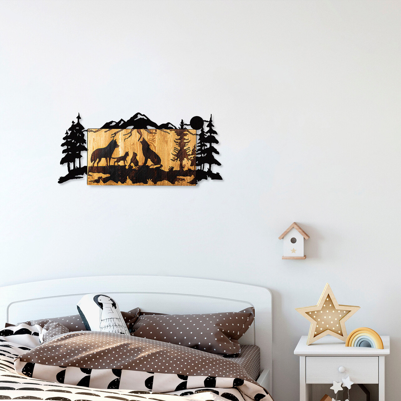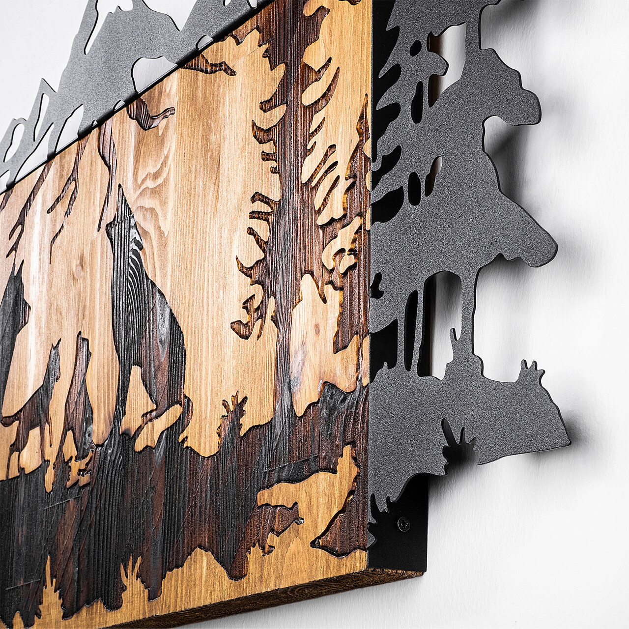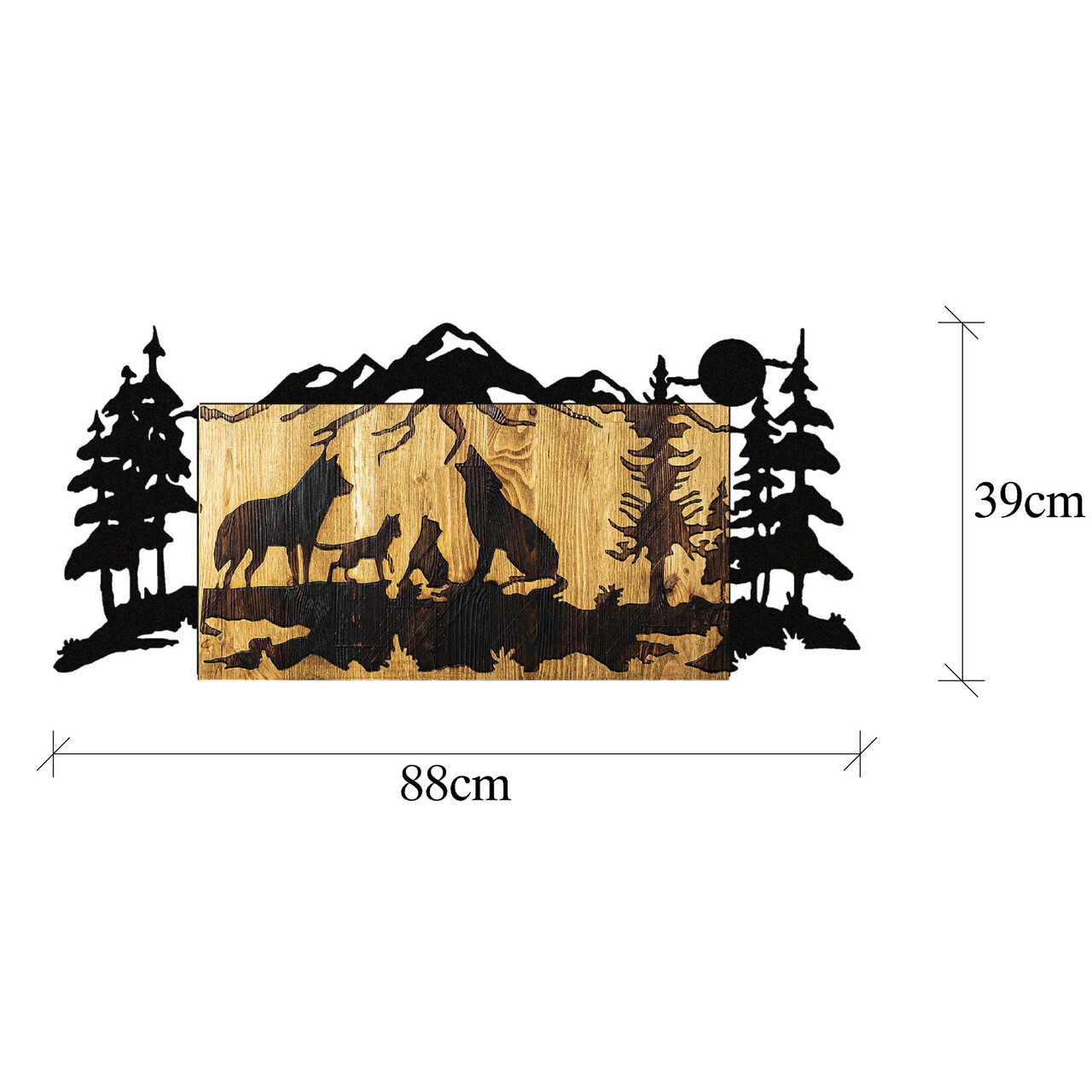 Decoratiune de perete, Wolves, 50% lemn/50% metal, Dimensiune: 88 x 39 x 3 cm, Negru