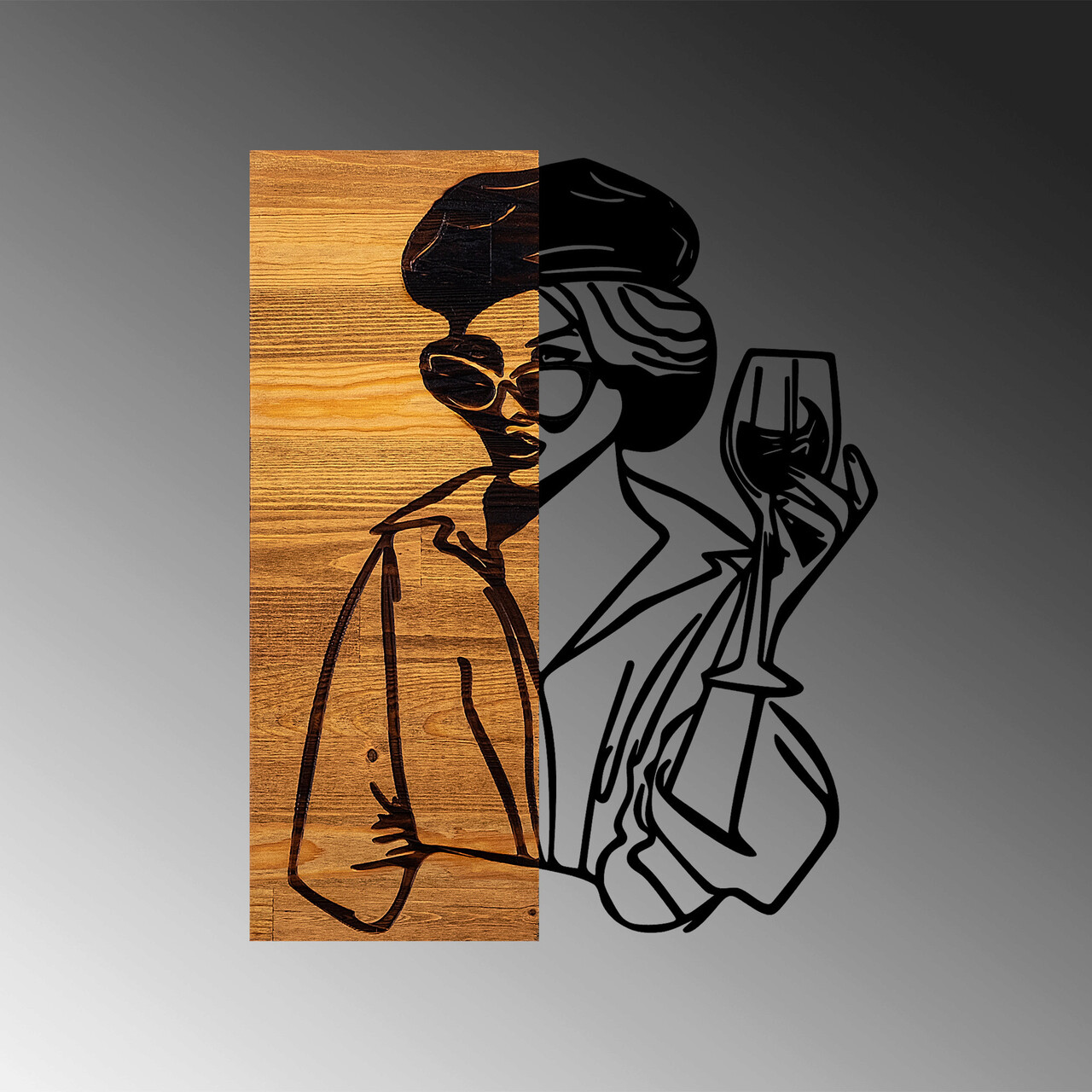 Decoratiune de perete, Woman 2, 50% lemn/50% metal, Dimensiune: 39 x 3 x 50 cm, Negru / Nuc deschis