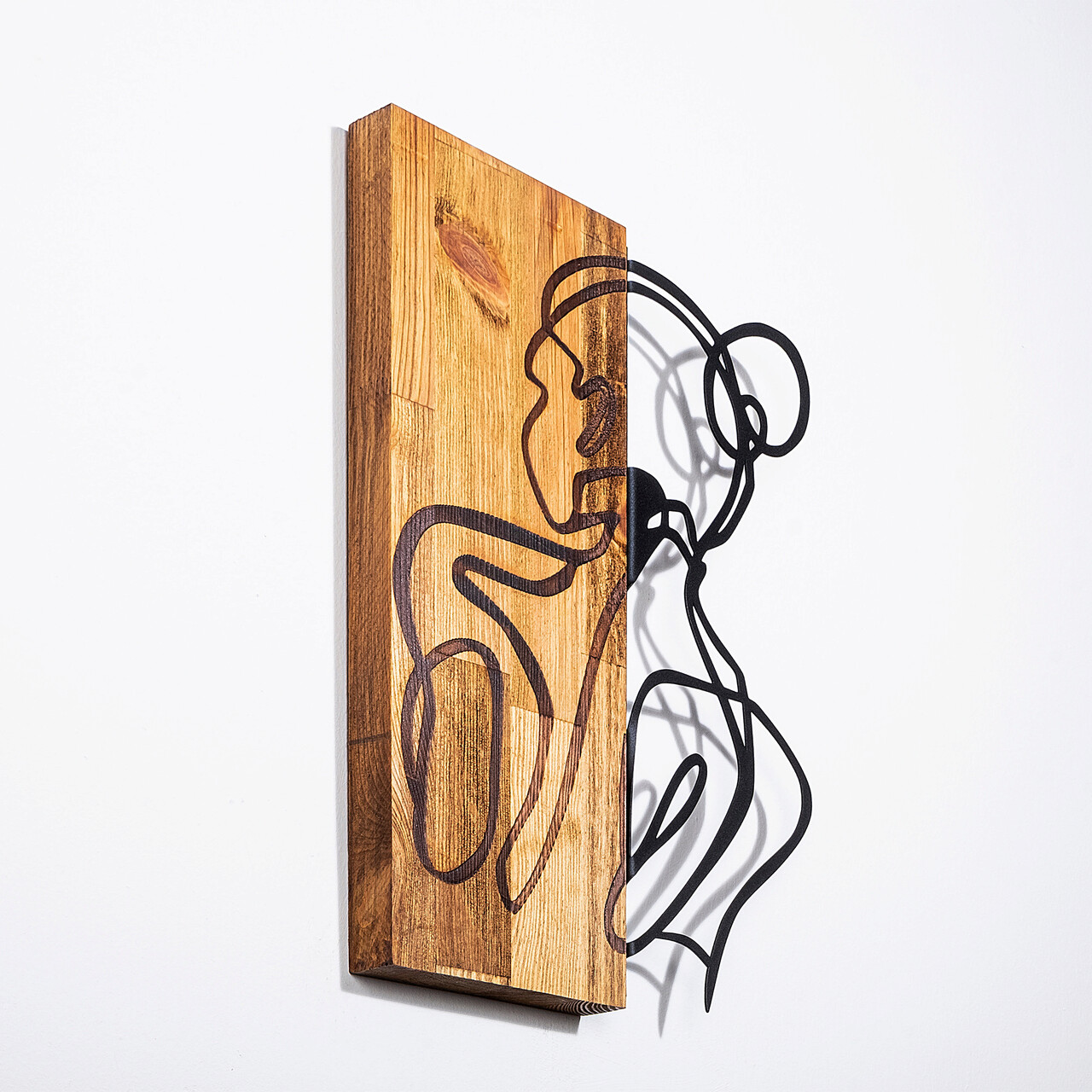Decoratiune de perete, Woman Body, 50% lemn/50% metal, Dimensiune: 35 x 3 x 50 cm, Negru / Nuc deschis