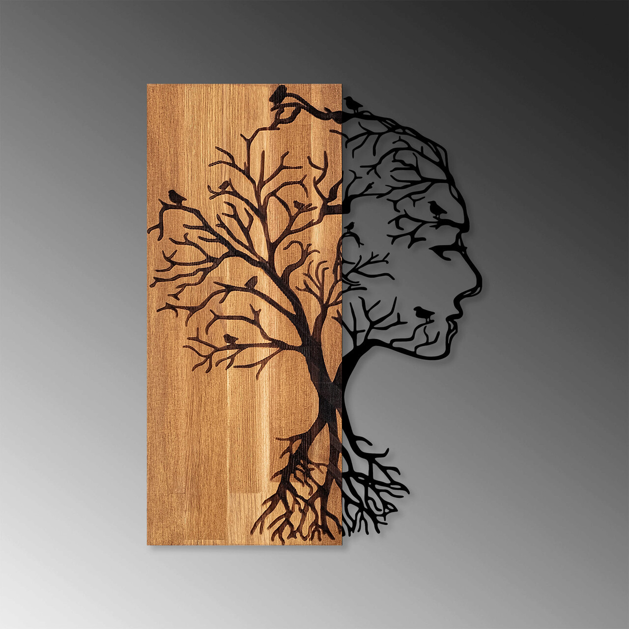 Decoratiune de perete, Woman Face, 50% lemn/50% metal, Dimensiune: 43 x 58 cm, Nuc / Negru
