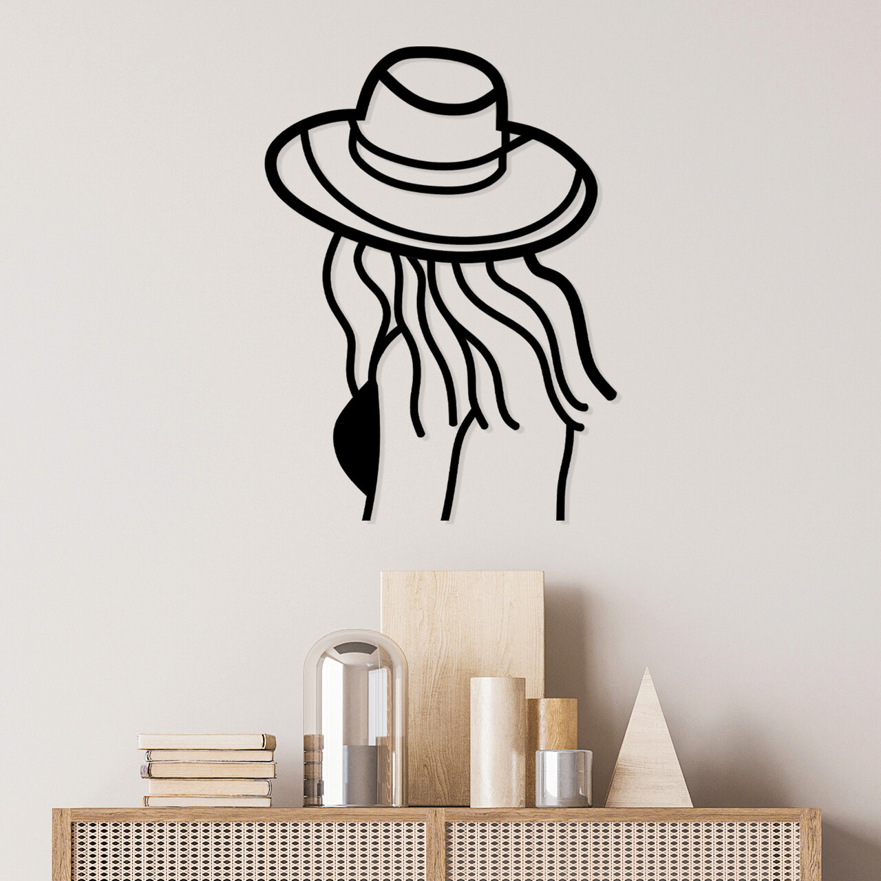 Decoratiune de perete, Woman On The Beach, Metal, Dimensiune: 47 x 63 cm, Negru
