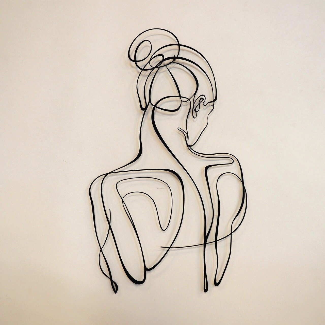 Decoratiune de perete, Woman Silhouette, Otel, 34 x 61 cm, Negru
