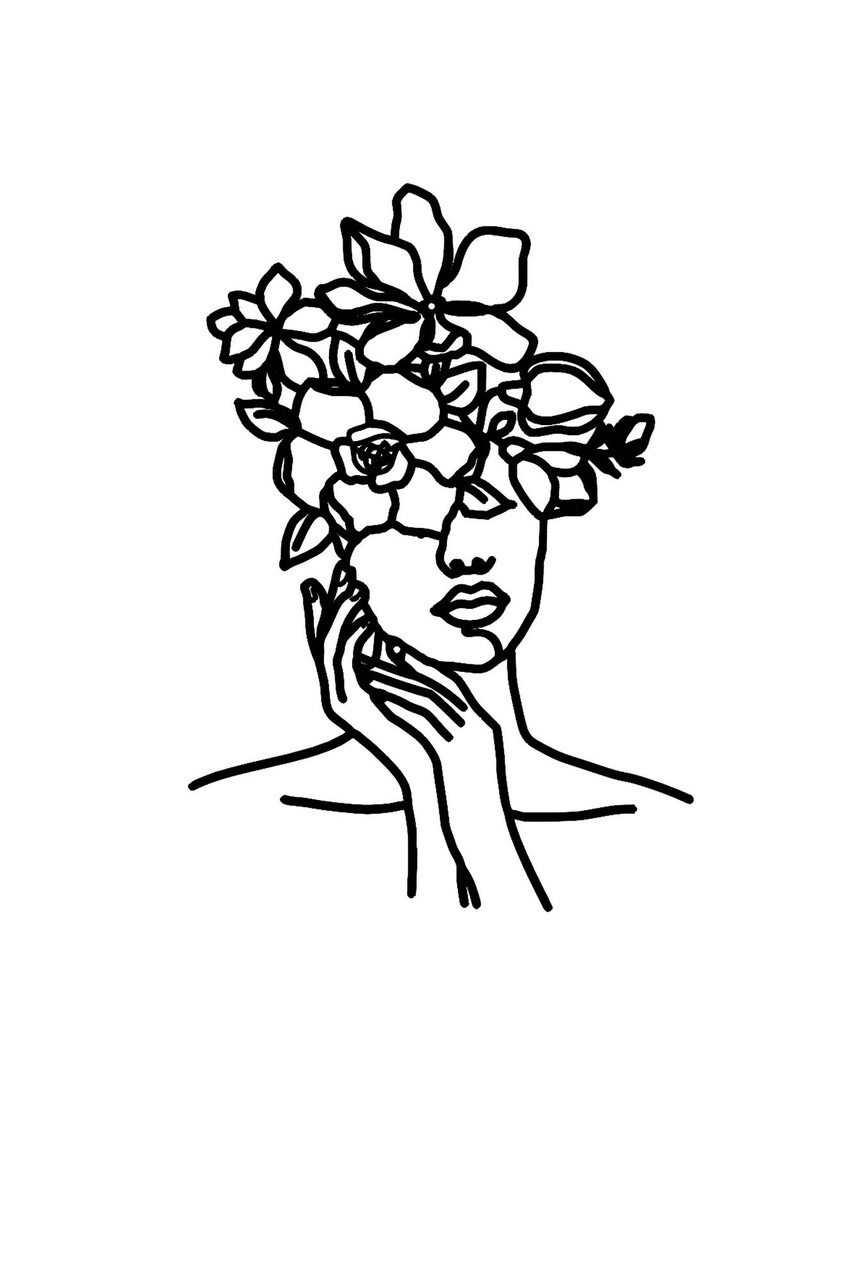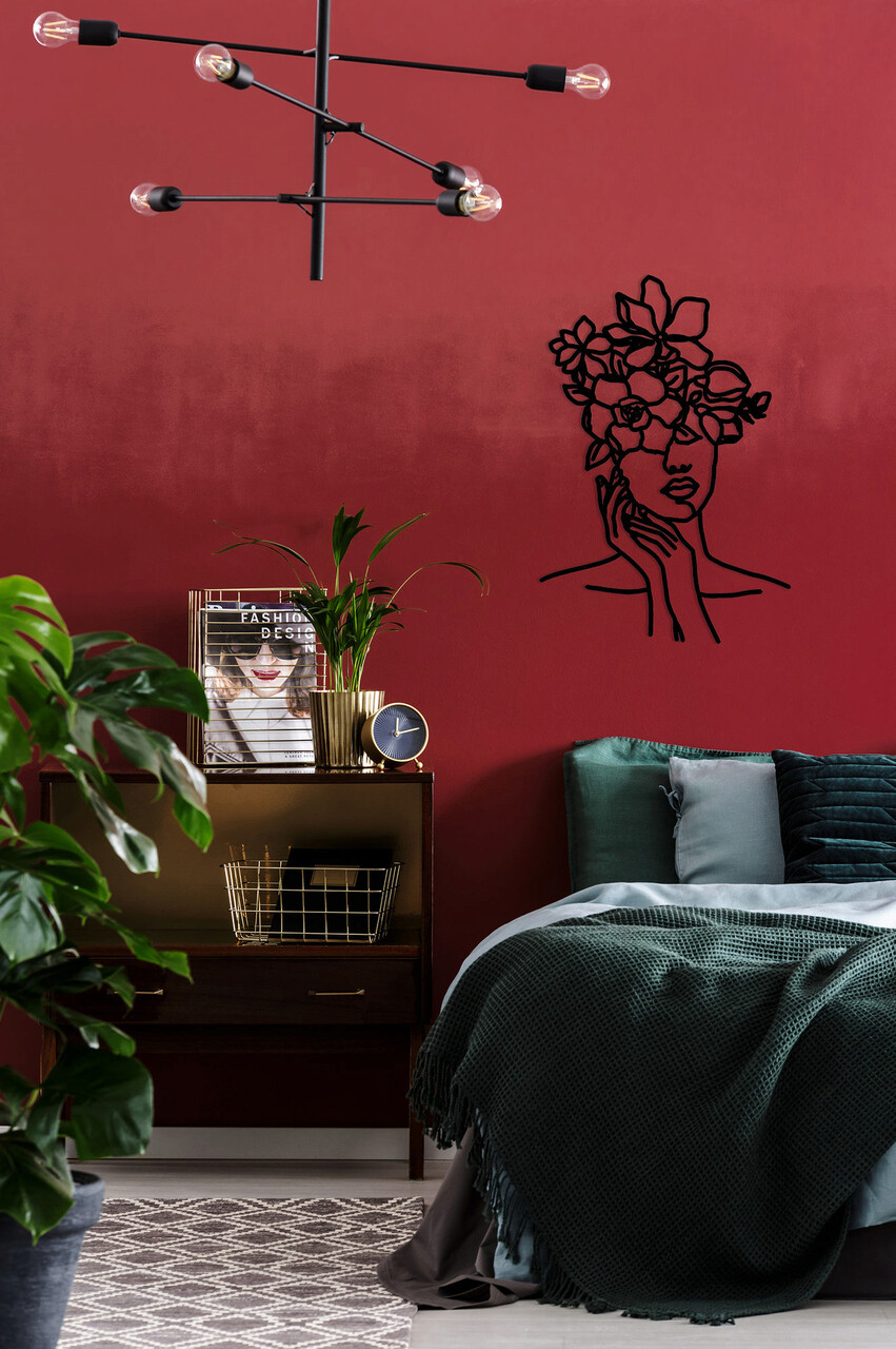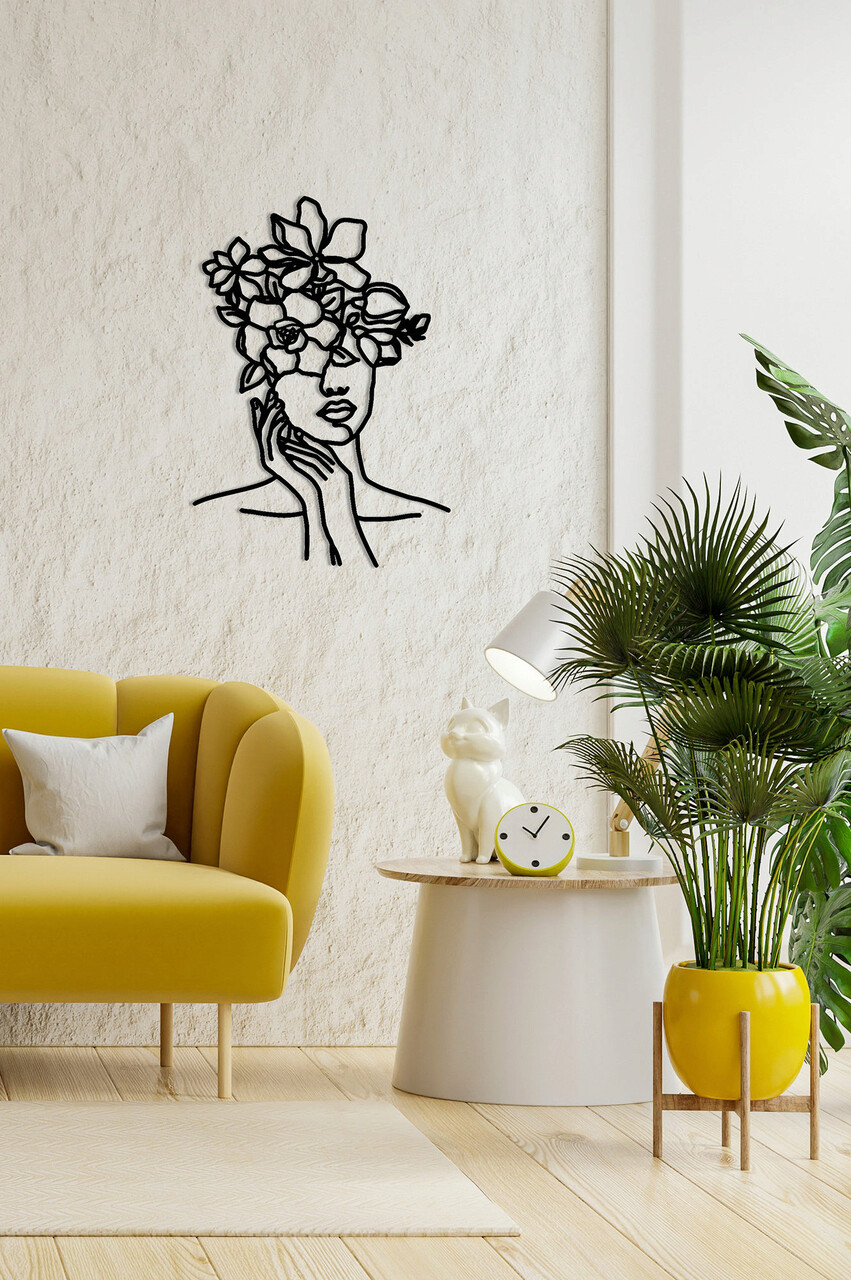 Decoratiune de perete, Woman with Flower, Metal, 30 x 30 cm, Negru