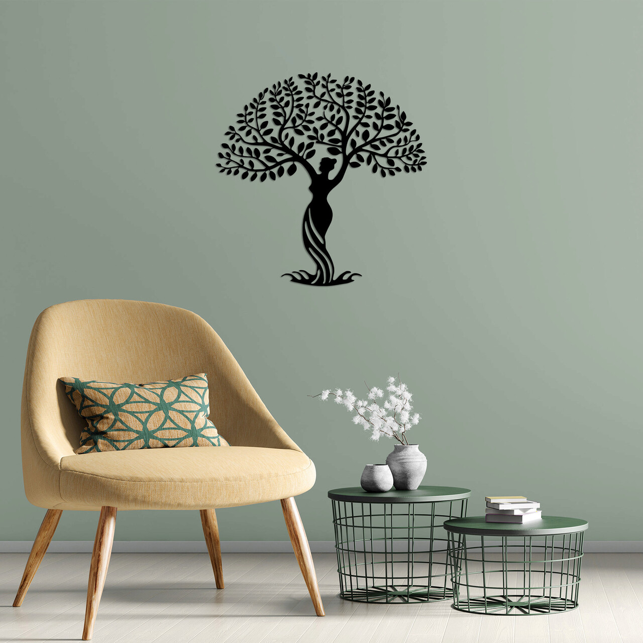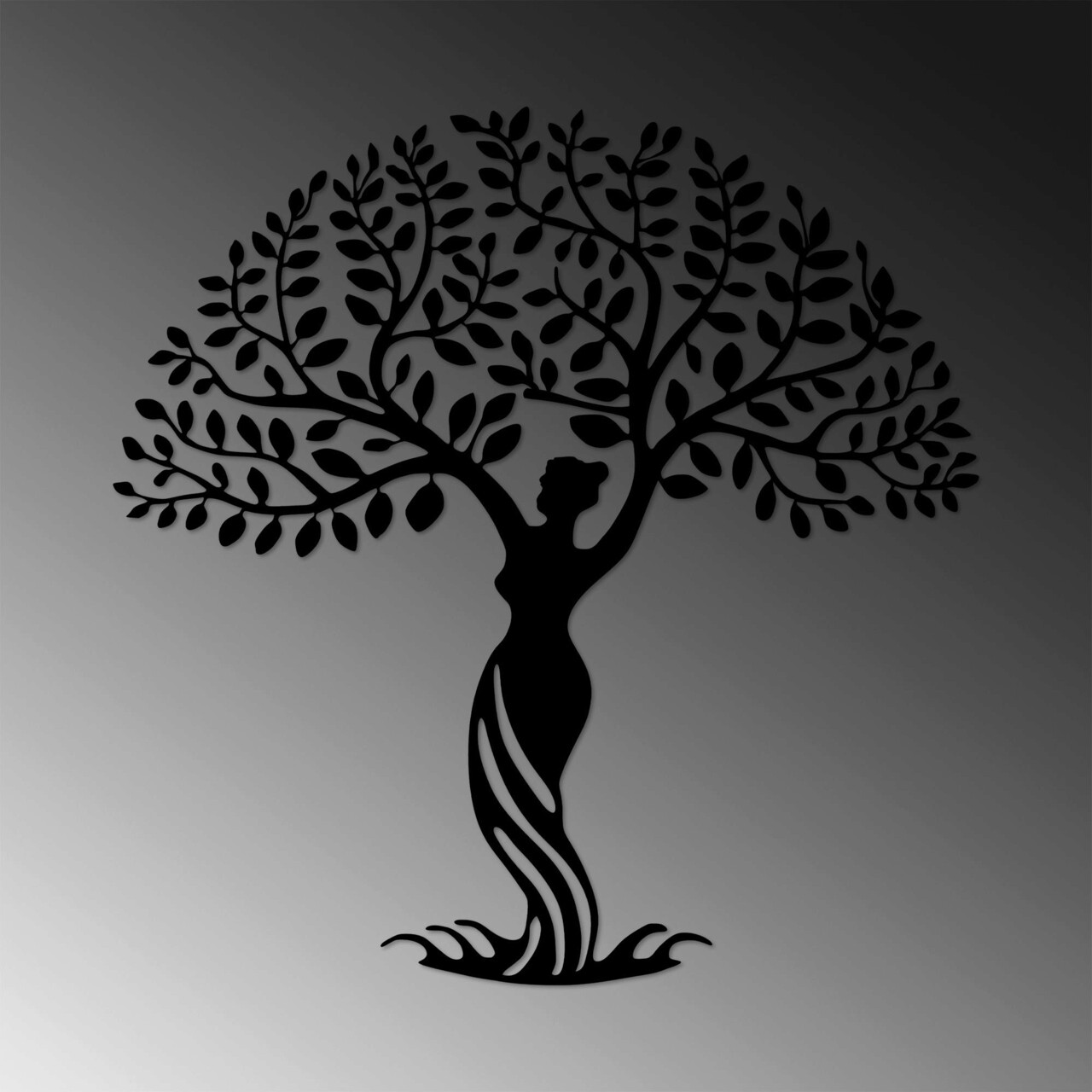 Decoratiune de perete, Women And Tree, Metal, Dimensiune: 69 x 70 cm, Negru